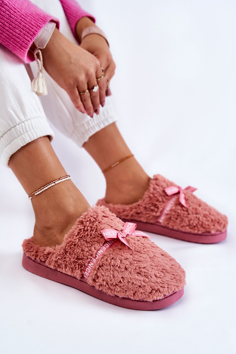 Dámské kožešinové pantofle s mašlí Růžove Ryana