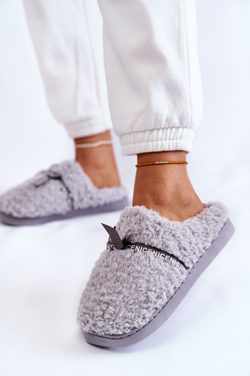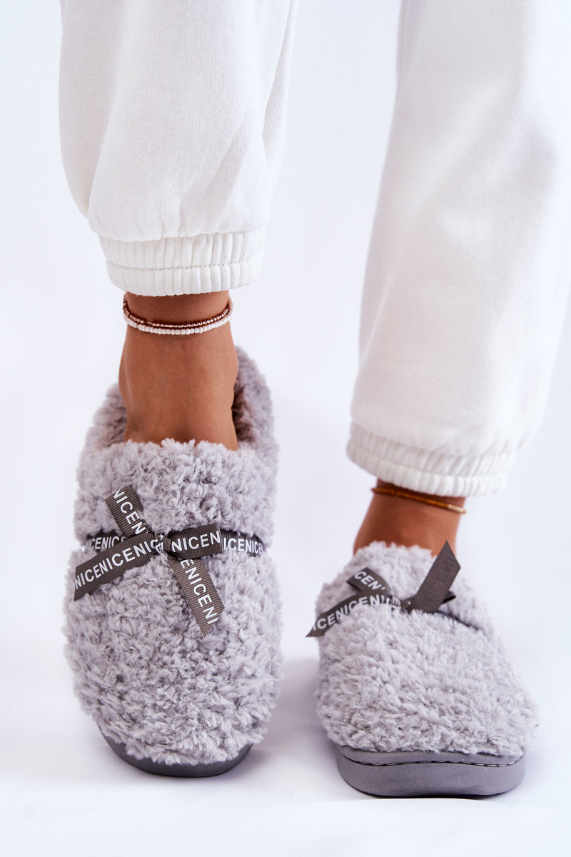 Dámské kožešinové pantofle s mašlí Šedá Ryana