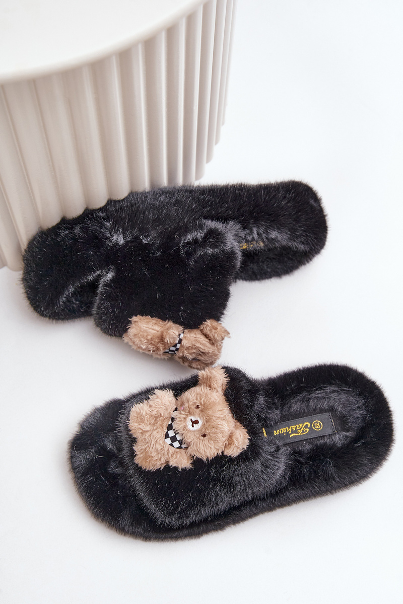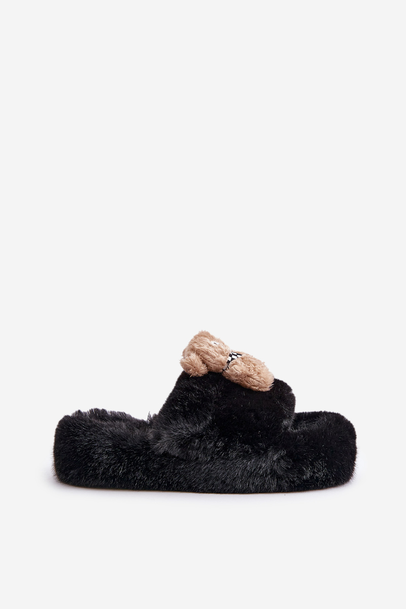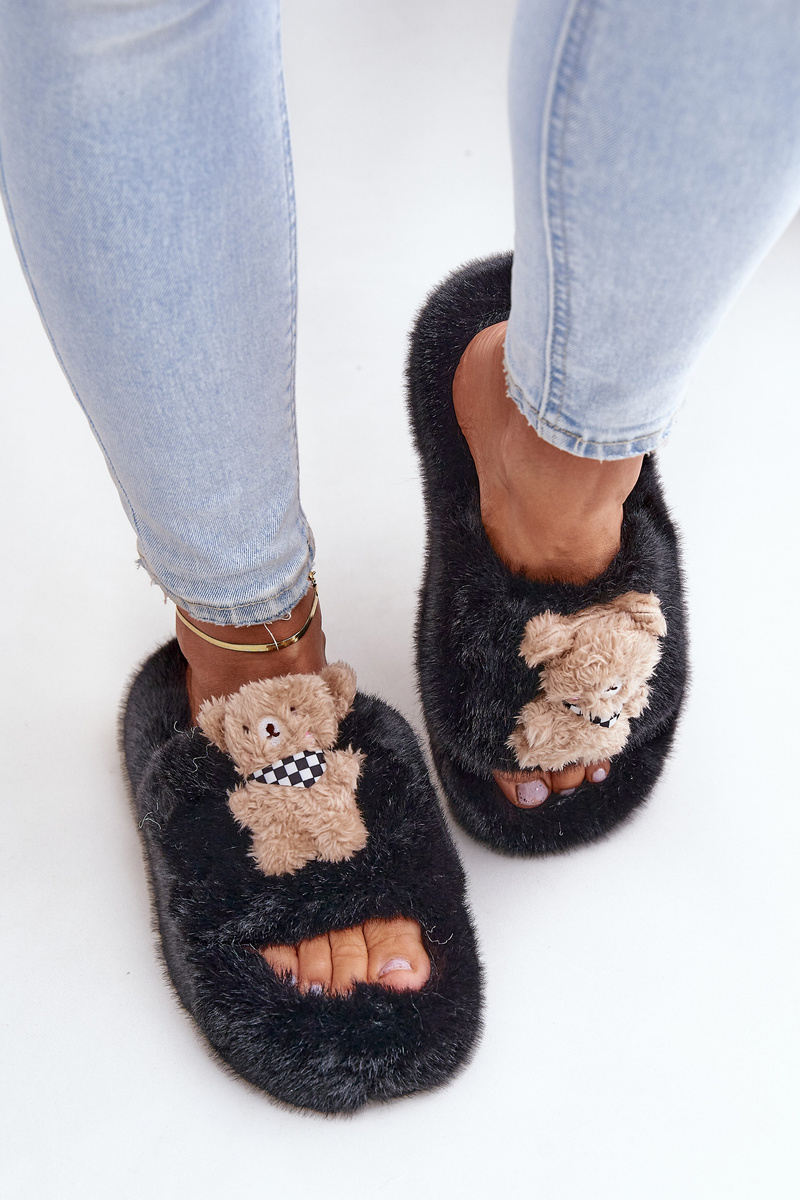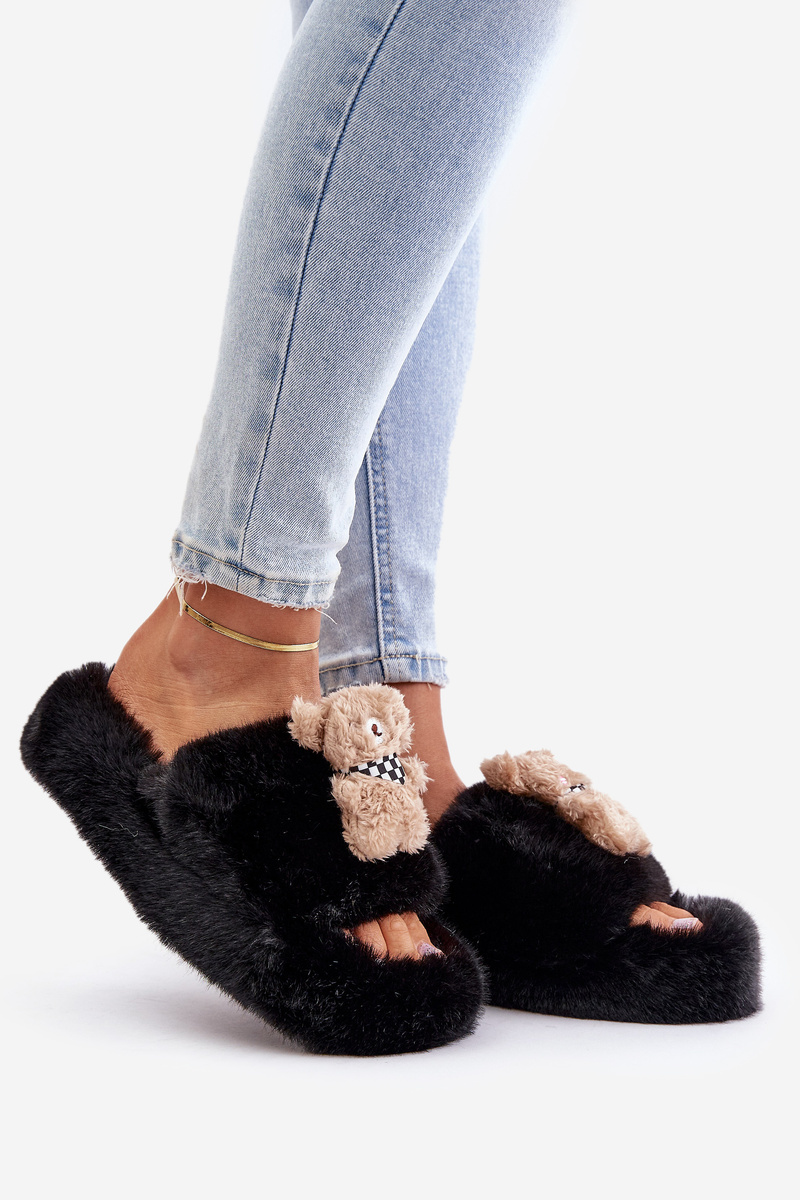 Dámské Kožešinové Pantofle S Medvídkem Černé Romania