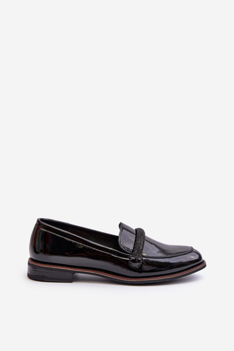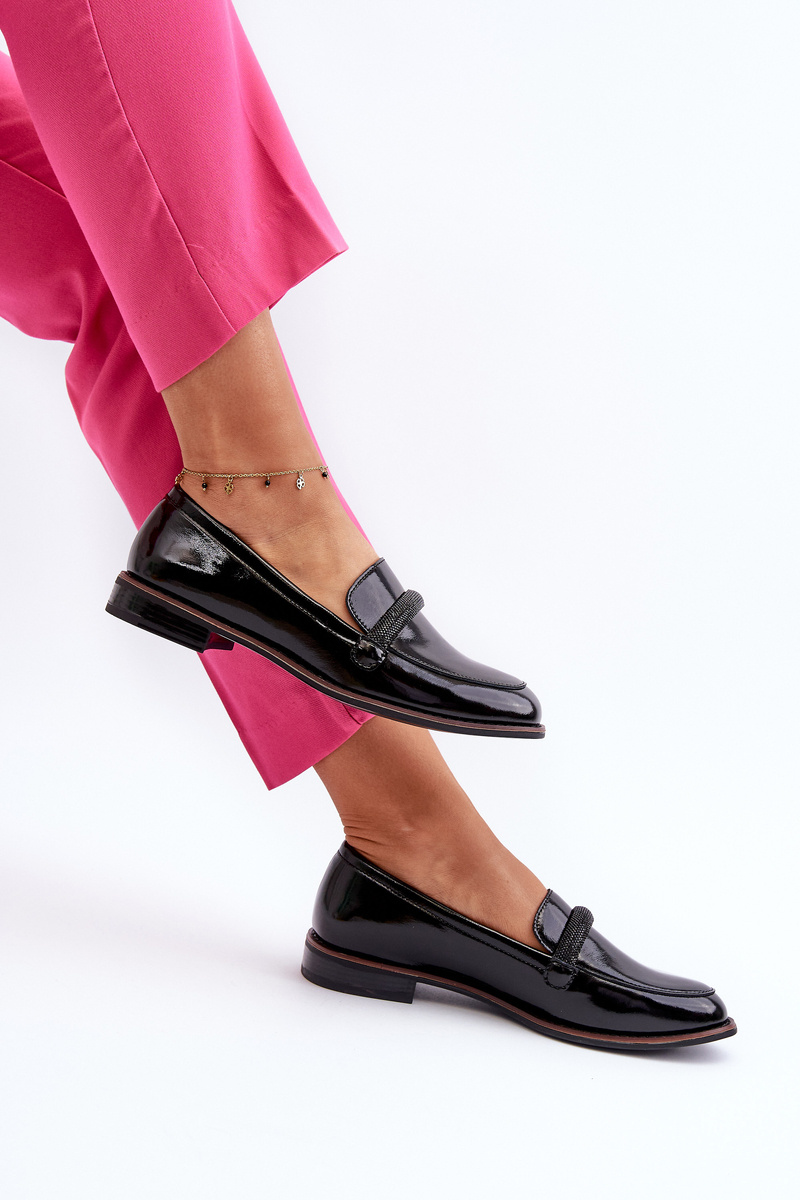 Dámské lakované kožené mokasíny s ozdobným páskem Černé Saosin