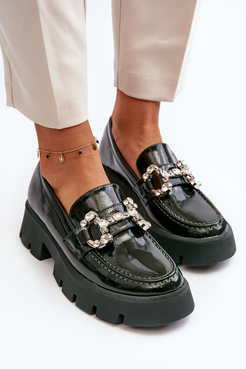 Dámské lakované mokasíny s ozdobou tmavě zelené Arsaba