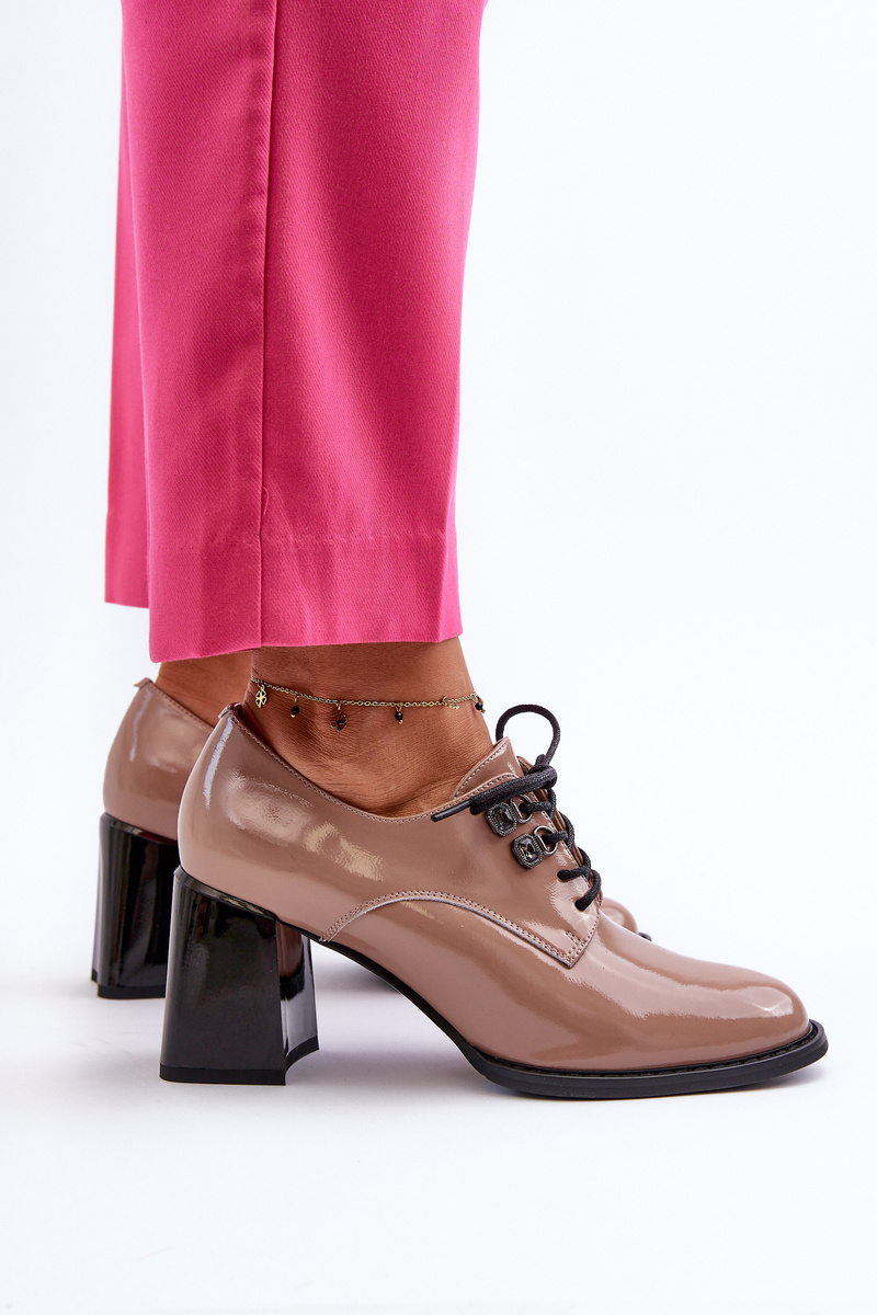 Dámské lakované polobotky na podpatku béžové Nelione