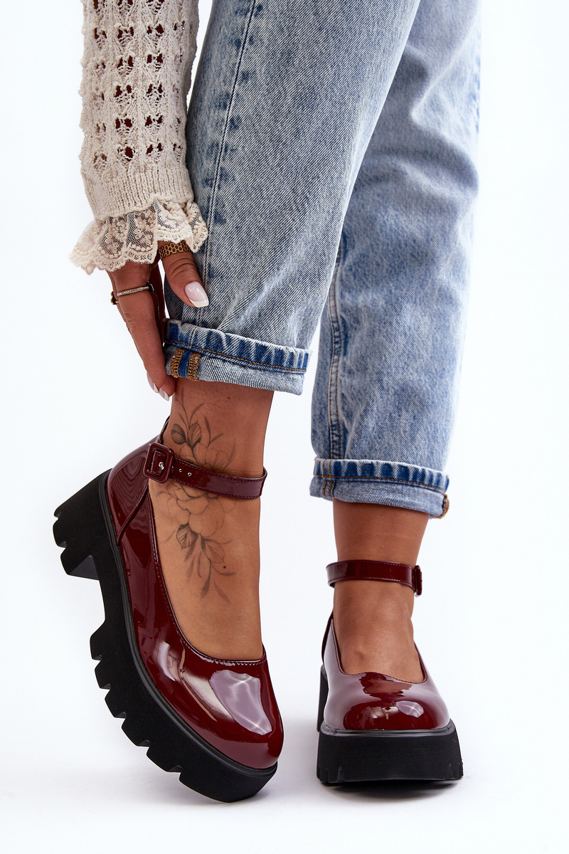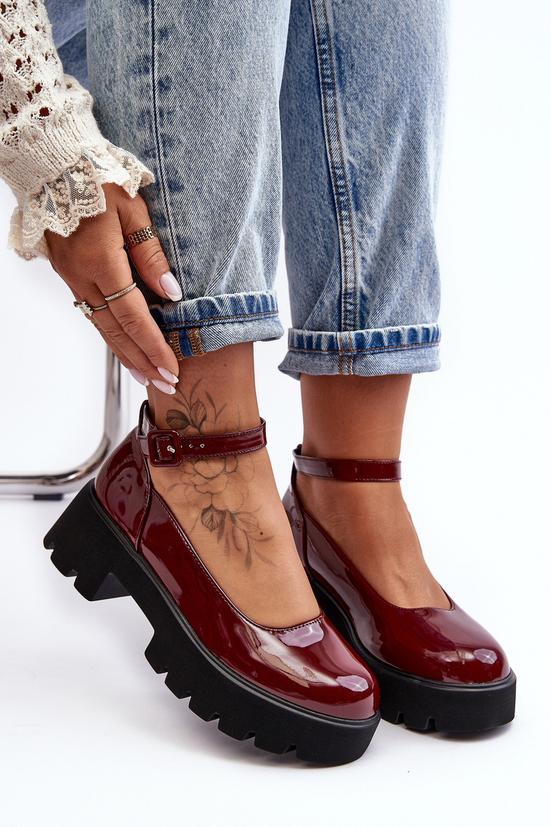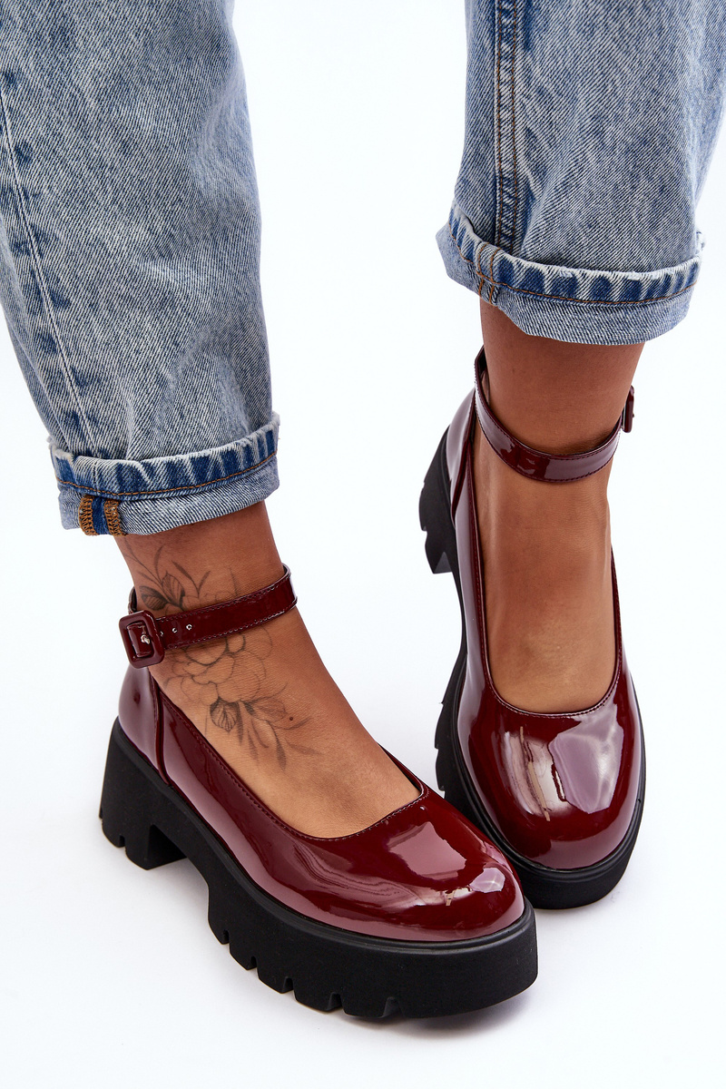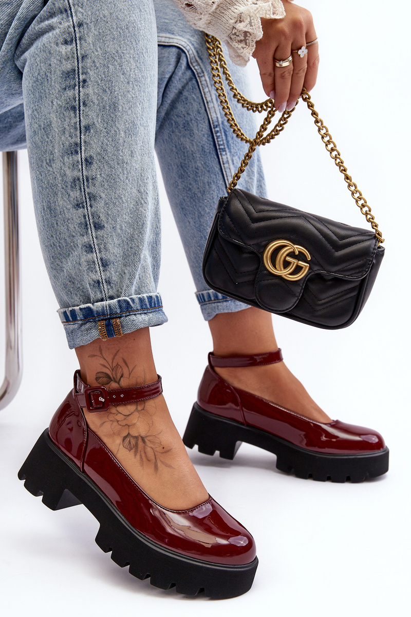 Dámské lakované polobotky s nízkým podpatkem se sponou Bordová Owena