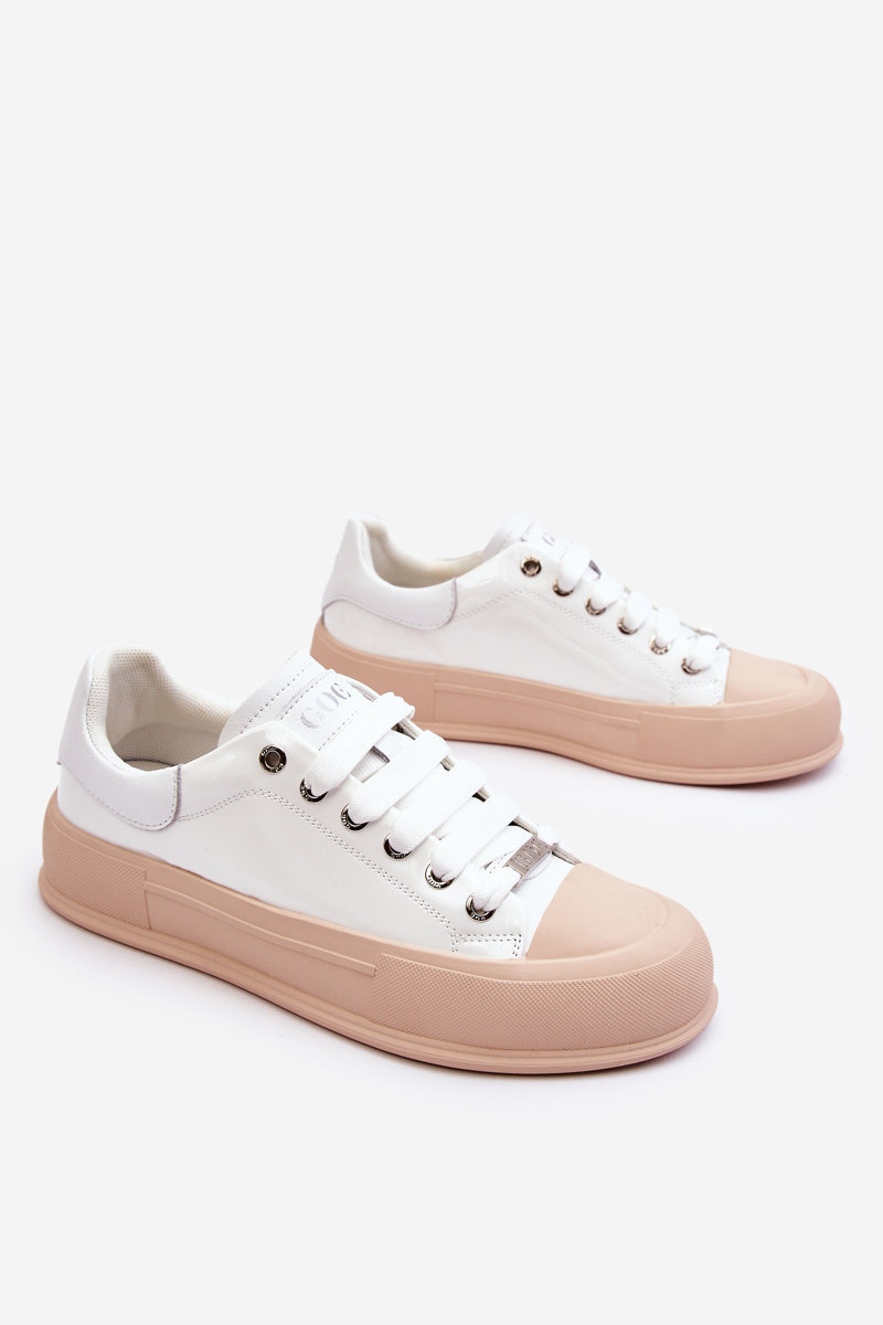 Skóra naturalna - labeltak Towar wprowadzony przed 13.12.2024Tak Dámské lakované tenisky na platformě GOE LL2N4020 Bíle