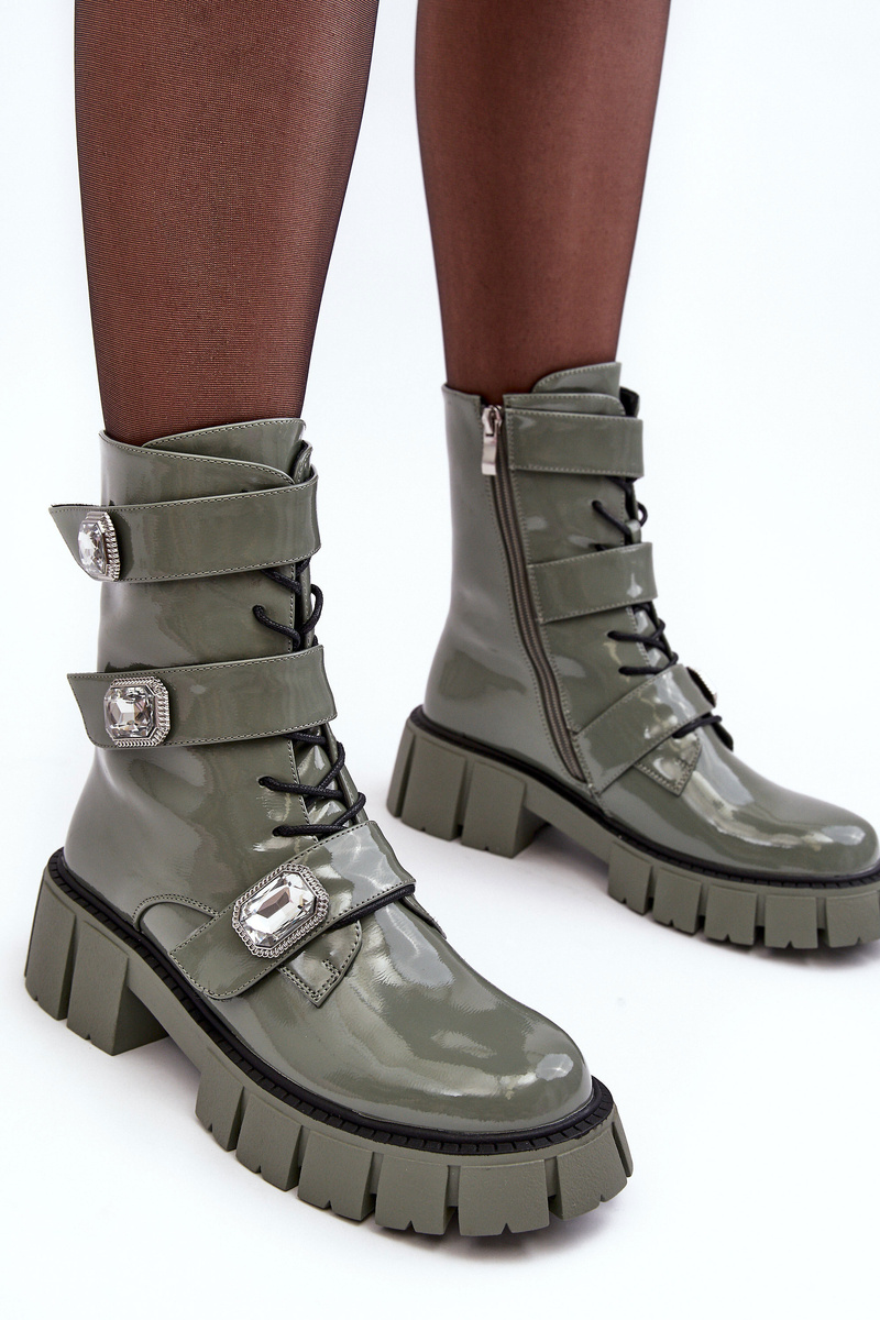 Dámské lakové boty ve zelené barvě SBarski MR870-61