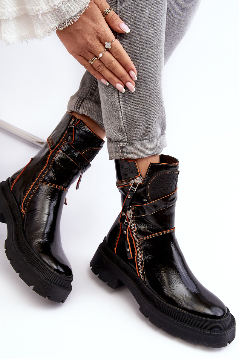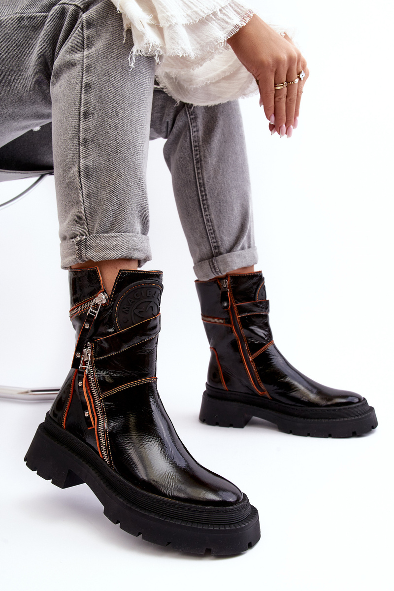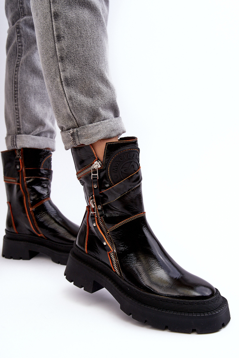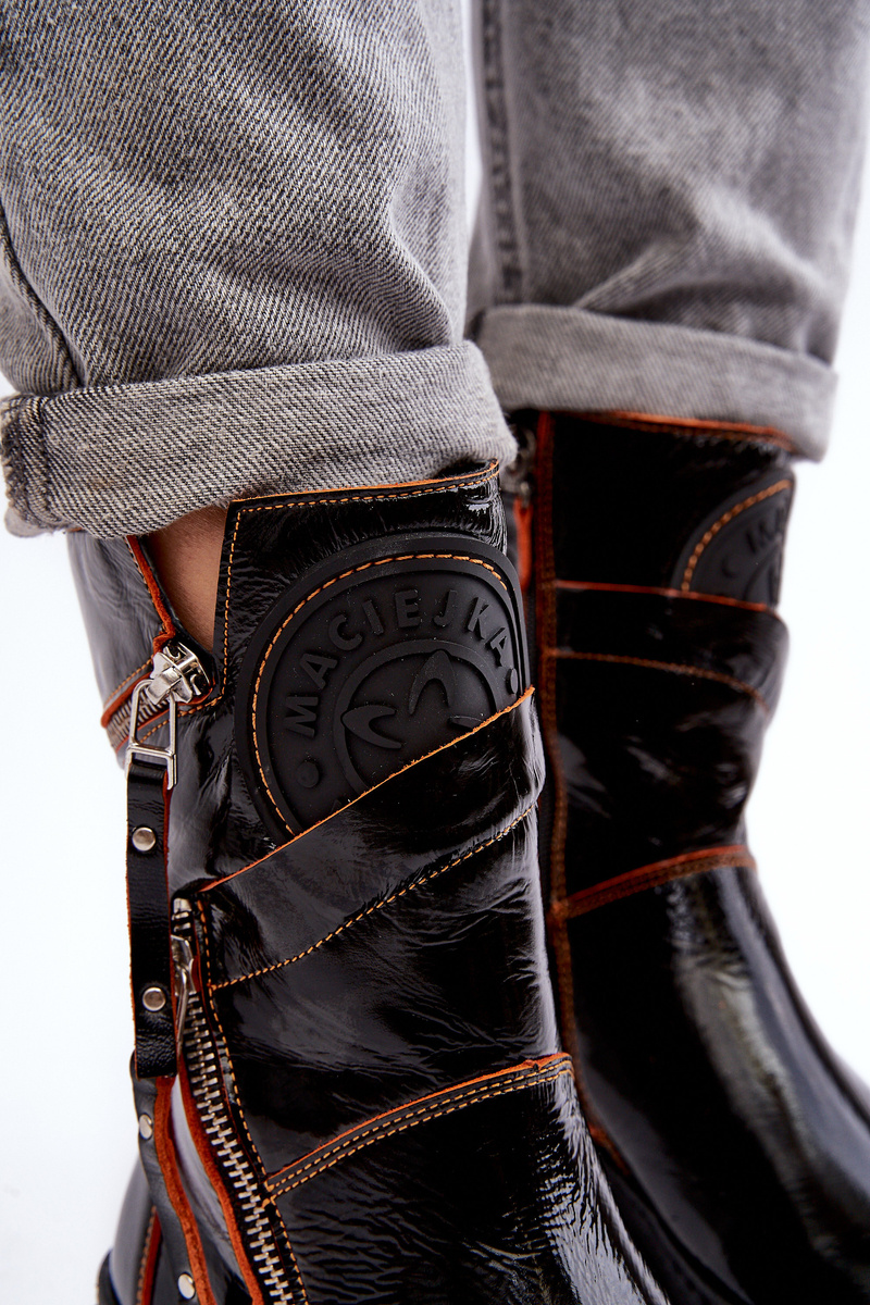Dámské lakové kůže boty s zipy Maciejka 06238-18 černé