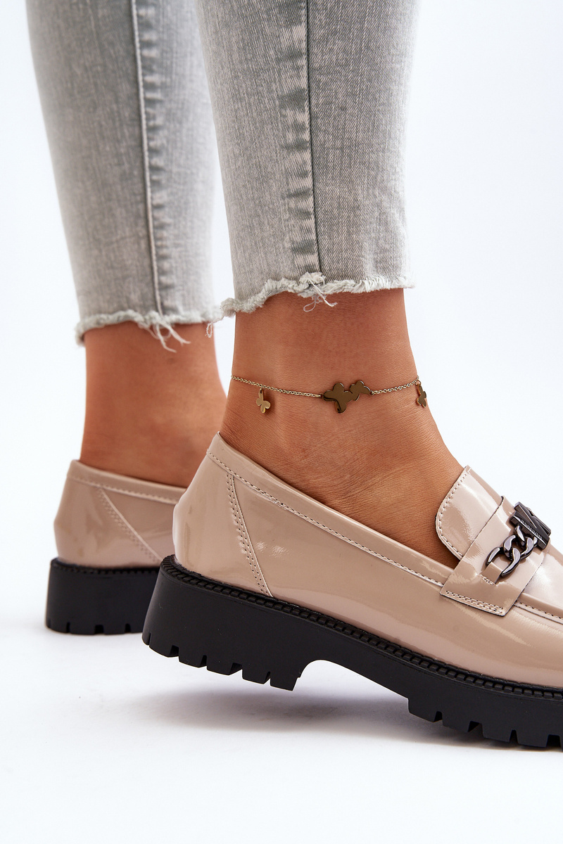 Dámské lakové mokasíny na ploché podrážce béžové Ezoma