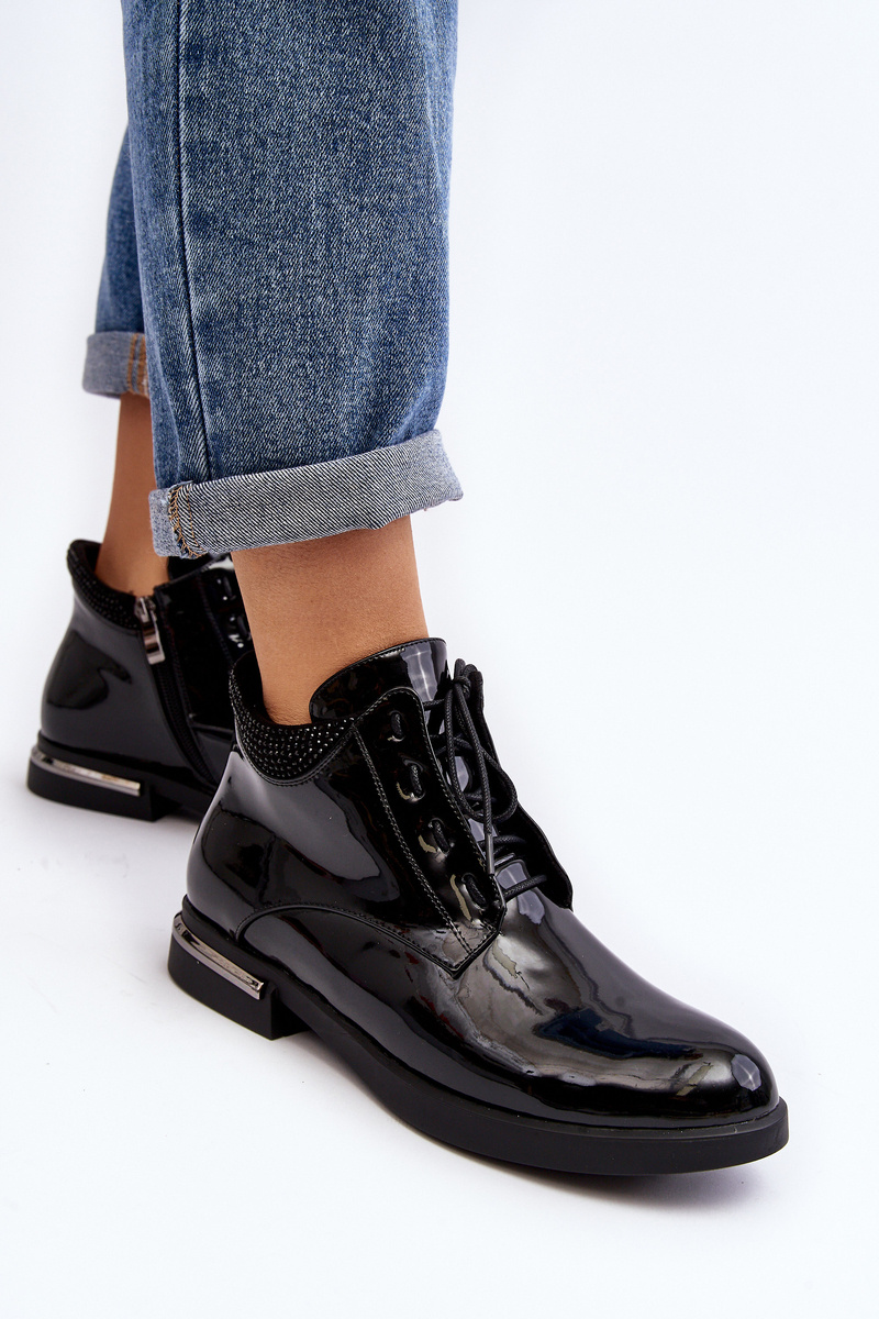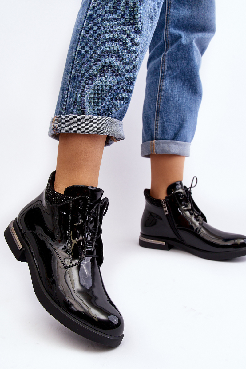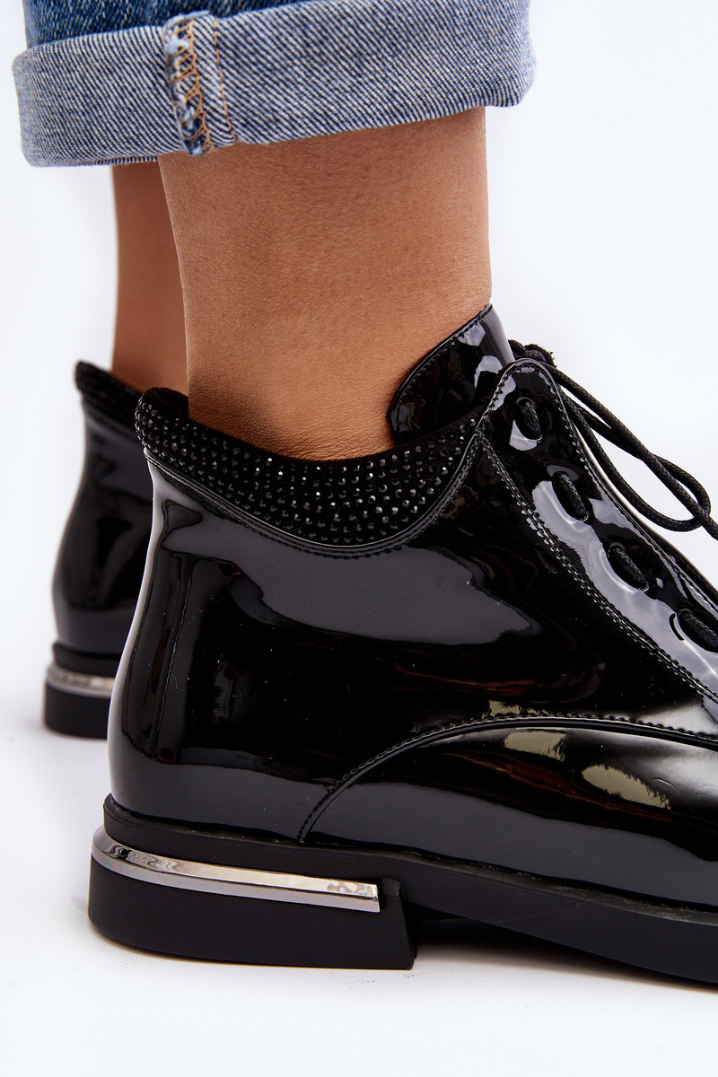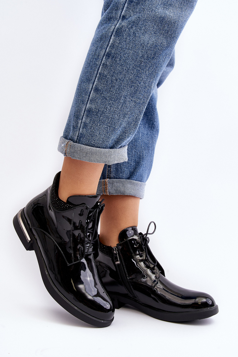 Dámské lakové polobotky na plochém podpatku Lu Boo černé