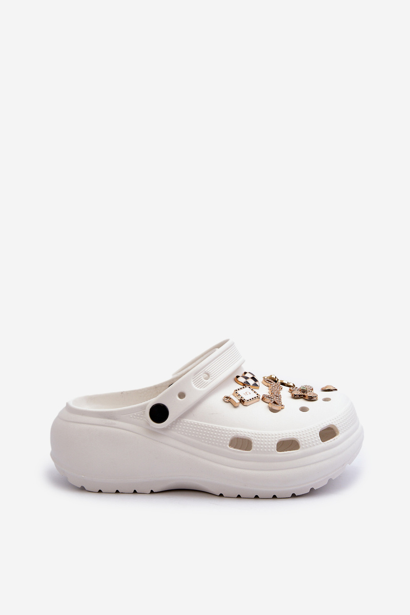 Dámské Lehké Pěnové Žabky S Hrubou Podrážkou S Ozdobami Bílé Effiora