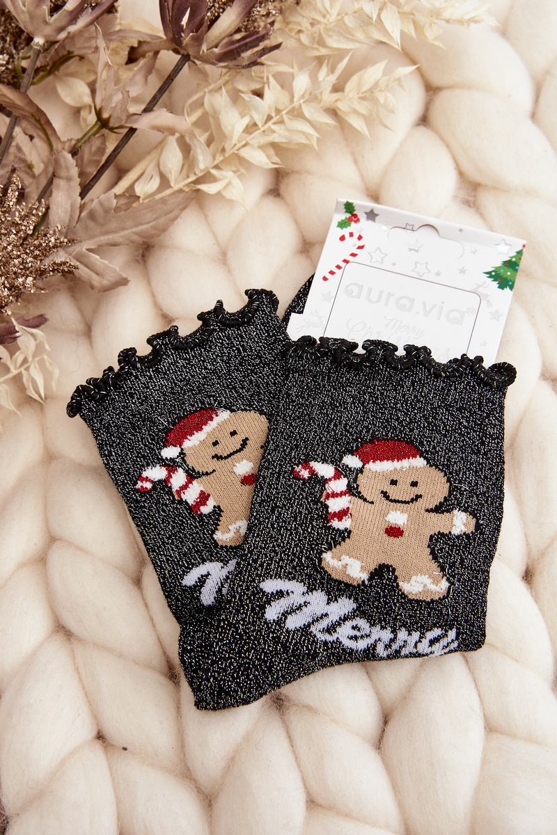 Dámské Lesklé Vánoční Ponožky Černé