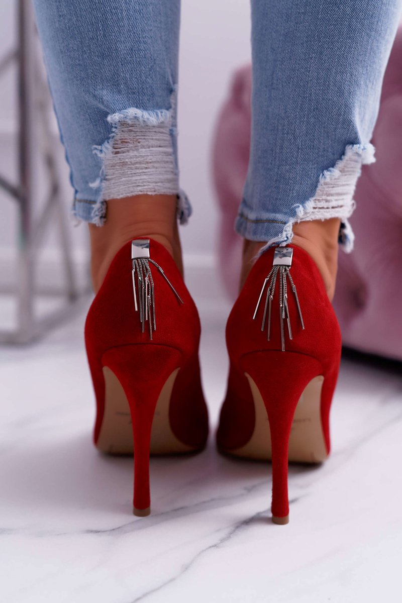 Dámské Lodičky Na Jehlovém Podpatku Laura Messi 1727 Semišová Kůže červené Valentine