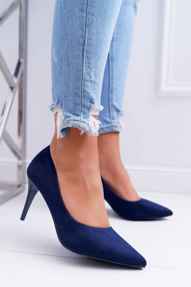 Dámské Lodičky Na Jehlovém Podpatku Semišové Tmavě Modré Cream