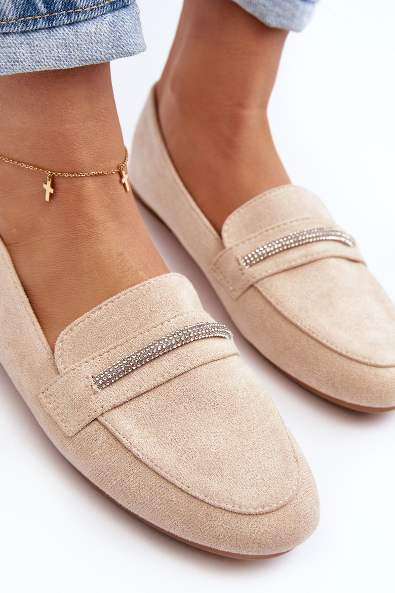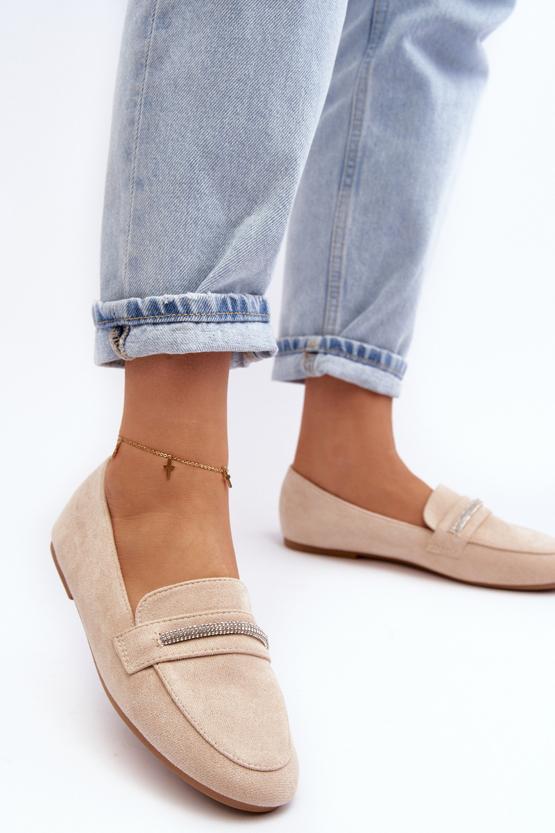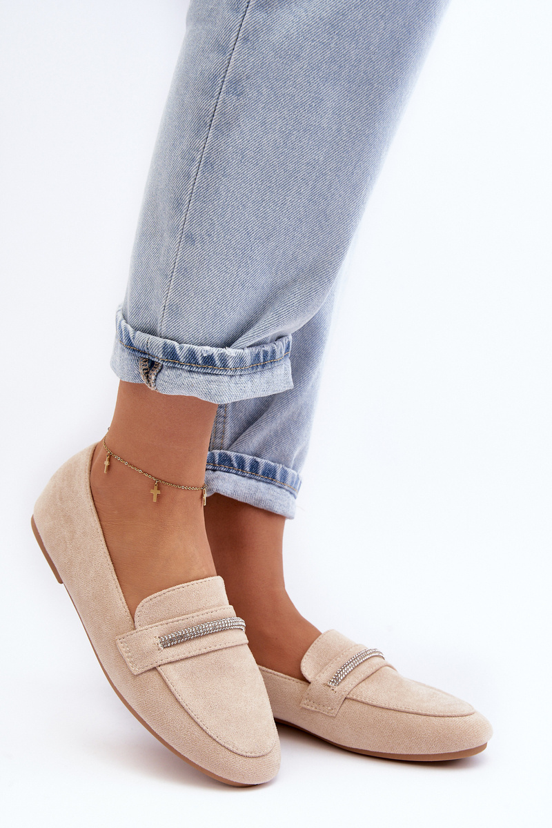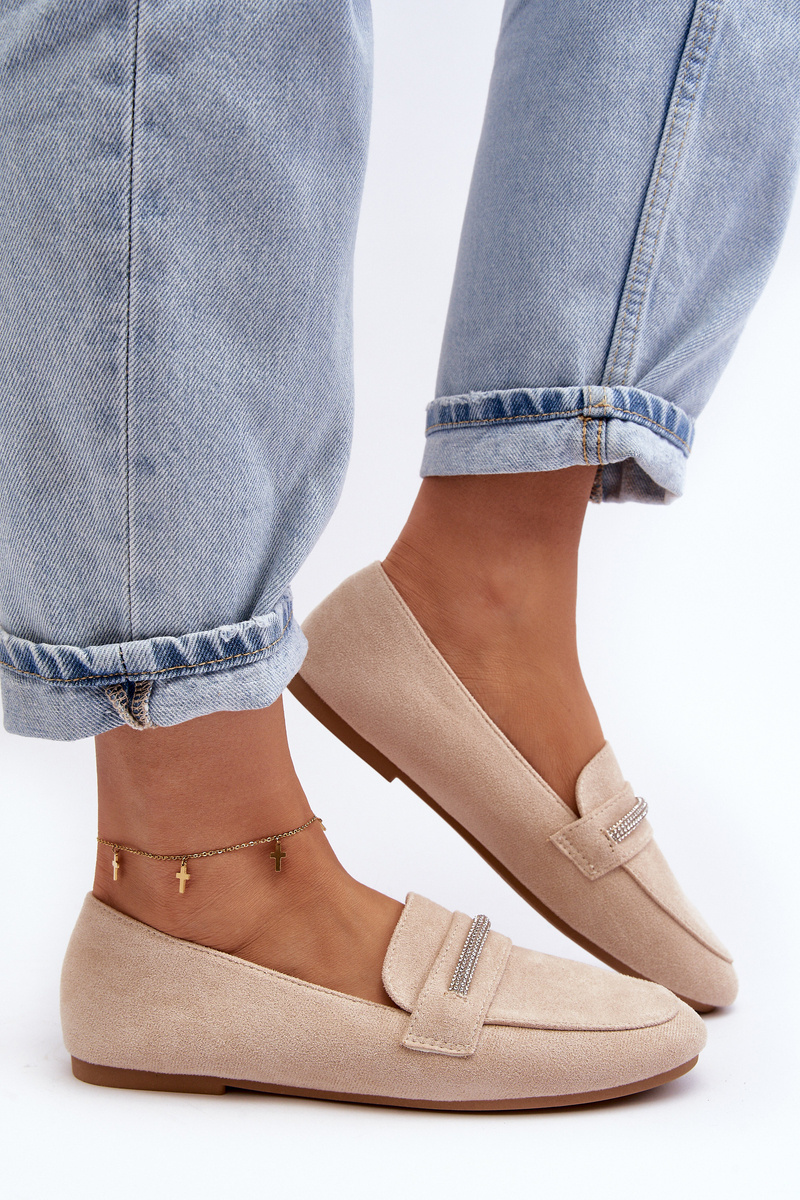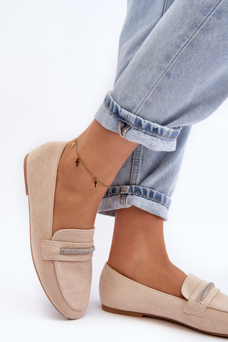 Dámské mokasíny vyrobené z ekologického semiše. Vepředu pásek s cyrkoniemi. Tento model je osazen na plochém podpatku. Zaoblené špičky. Měkká a tvarovaná stélka z ekokůže zaručuje pohodlí během celého dne! Stylové mokasíny jsou nezbytnou součástí dámského šatníku! Určitě si je musíš pořídit! Při výběru velikosti se řiďte tabulkou velikostí.
