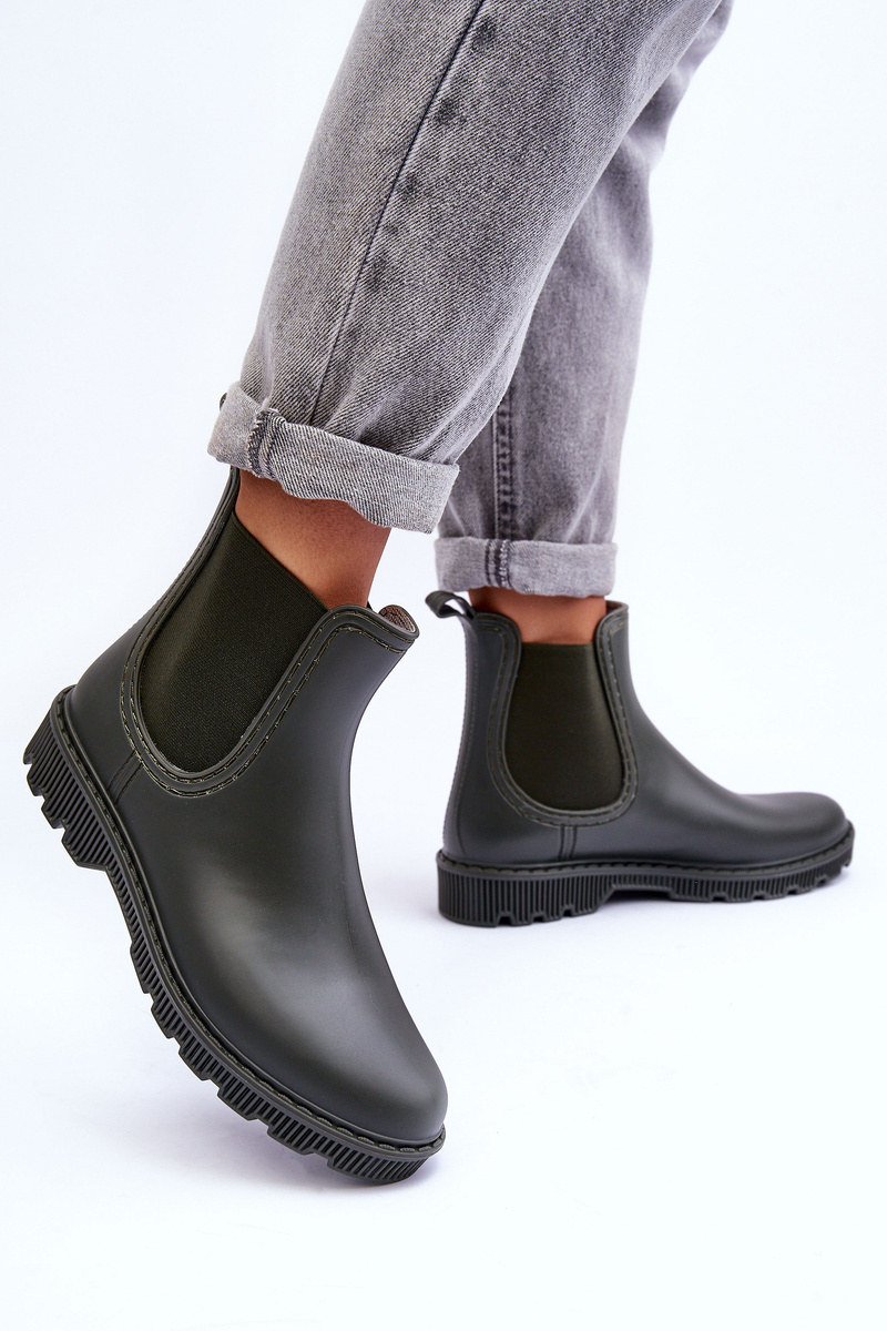 Klasické, matné dámské gumové boty byly vyrobeny z gumového materiálu. Boty jsou osazeny plochou patou. Model se zapíná materiálovou vložkou. Ideální během deštivého počasí! Při výběru velikosti se řiďte tabulkou velikostí.