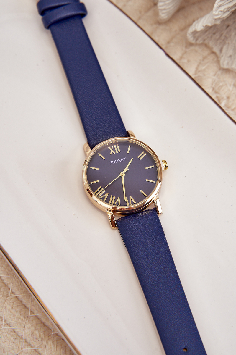 Dámské hodinky značky Ernest. Řemínek vyrobený z ekologické kůže. Jednoduchý, ale výjimečný tvar těchto hodinek je činí ideálním doplňkem jak pro každodenní, tak i formálnější příležitosti. Díky své univerzálnosti a eleganci vždy bude jemným doplňkem každého oblečení.