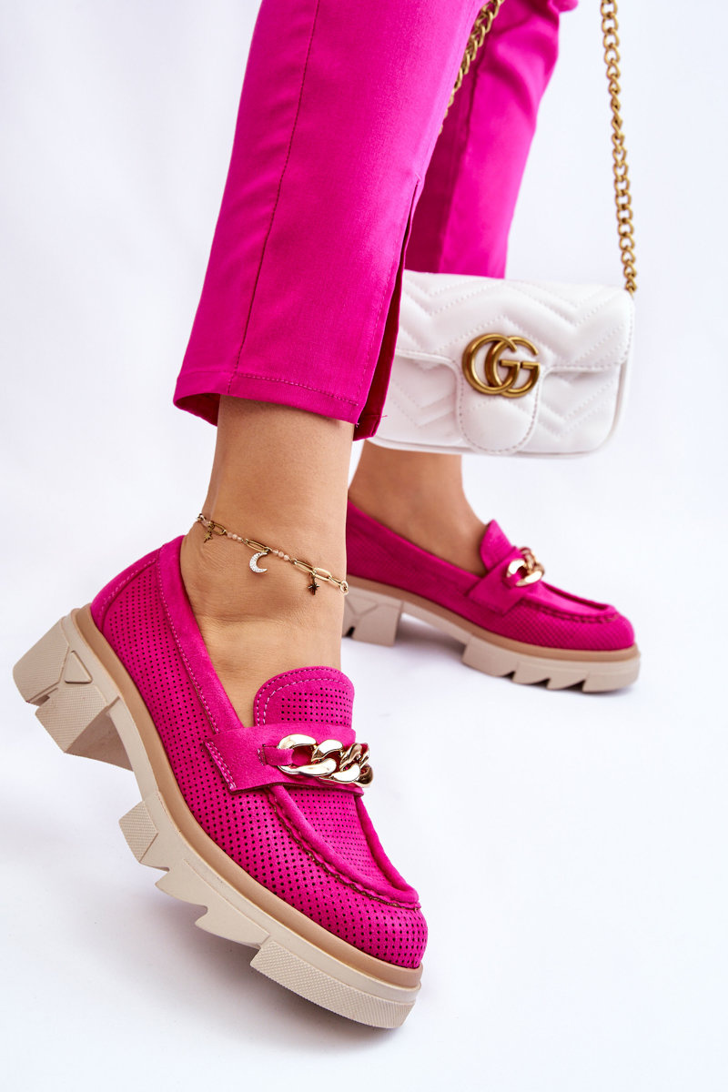 Dámské mokasíny Brogues s řetízkem Fuchsia Luella