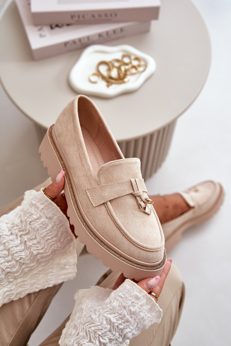 Dámské Mokasíny Eko Zamšové Se Zdobením Verindalle Světle Béžové