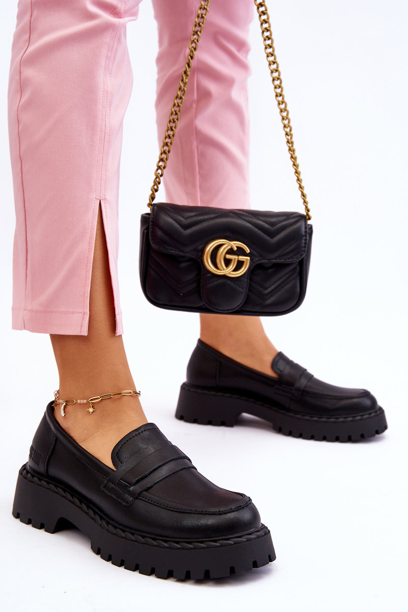 Dámské mokasíny Kožené boty Big Star LL274458 Černe