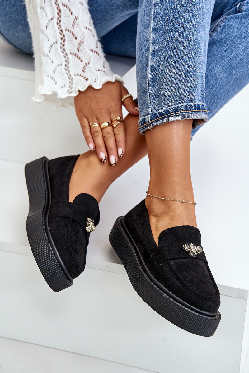 Stylové mokasíny na platformě vyrobené z eko semiše. Na přední straně zdobené roztomilou broží. Módní a pohodlné, skvěle se hodí do každodenních stylizací a zajišťují komfort nošení po celý den. Při výběru velikosti se řiďte tabulkou velikostí.