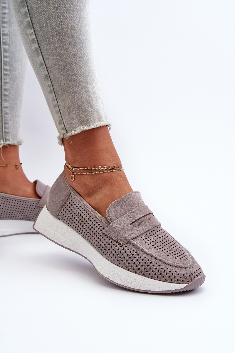 Dámské mokasíny na platformě z eko semiše šedé Inesqua