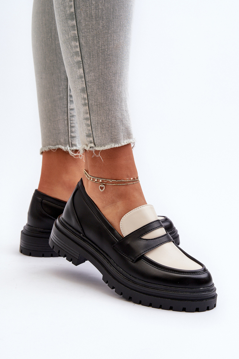 Dámské mokasíny na ploché podrážce a platformě černé Kaldira