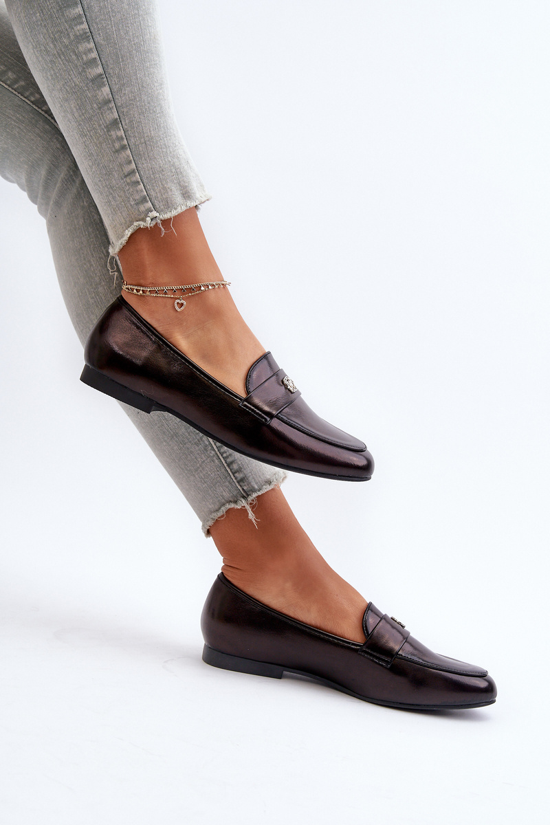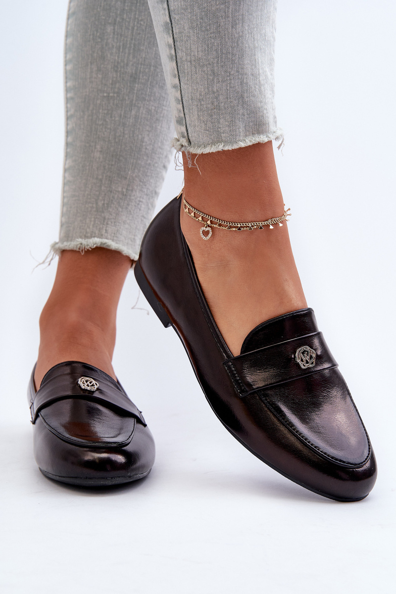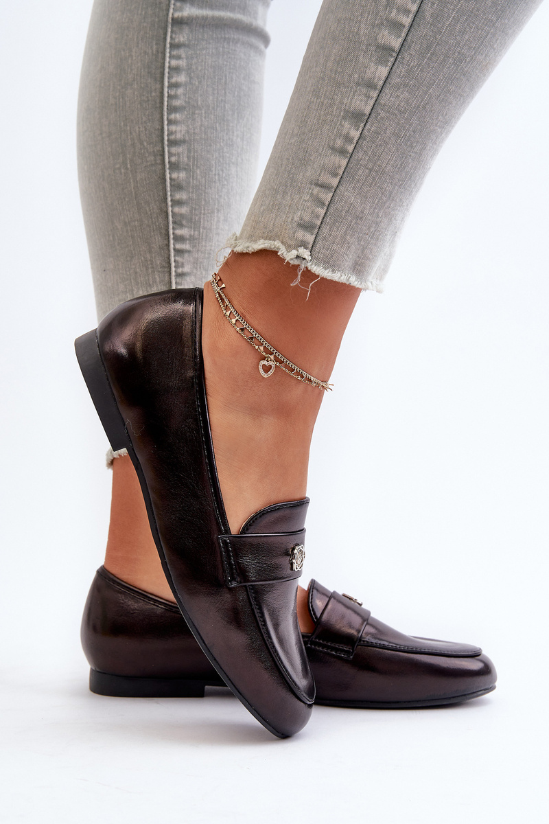 Elegantní dámské mokasíny vyrobené z ekokože jsou kombinací stylu a pohodlí. Jejich plochý podpatek zaručuje stabilitu, zatímco jemný pásek s malou zlatou ozdobou jim dodává jemný šarm. Jsou ideální pro různé styly!