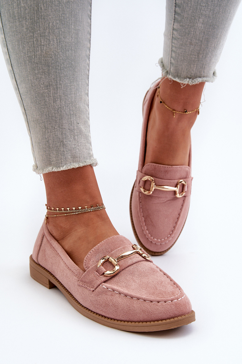Dámské mokasíny na ploché podrážce s ozdobou růžové Aviole