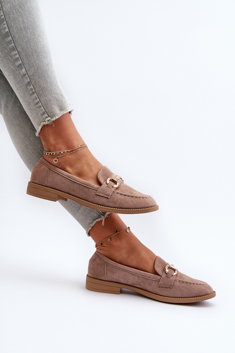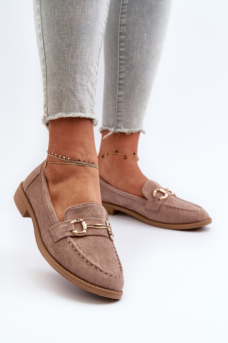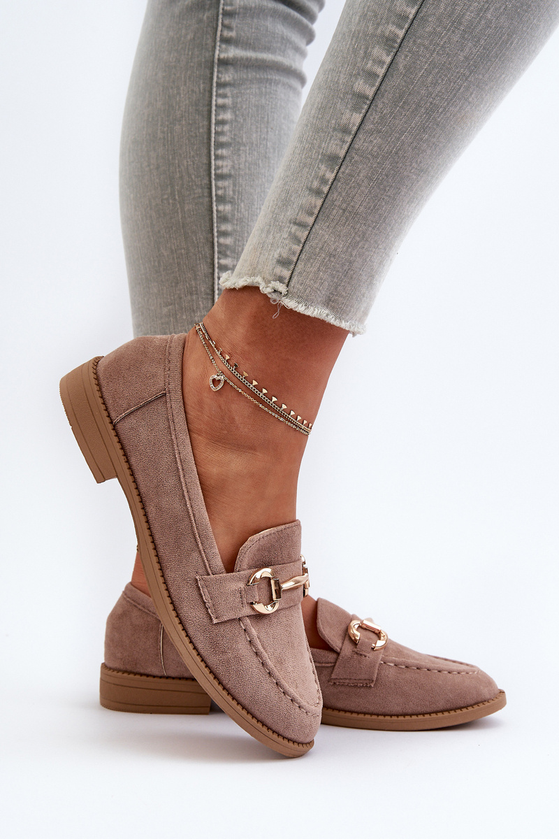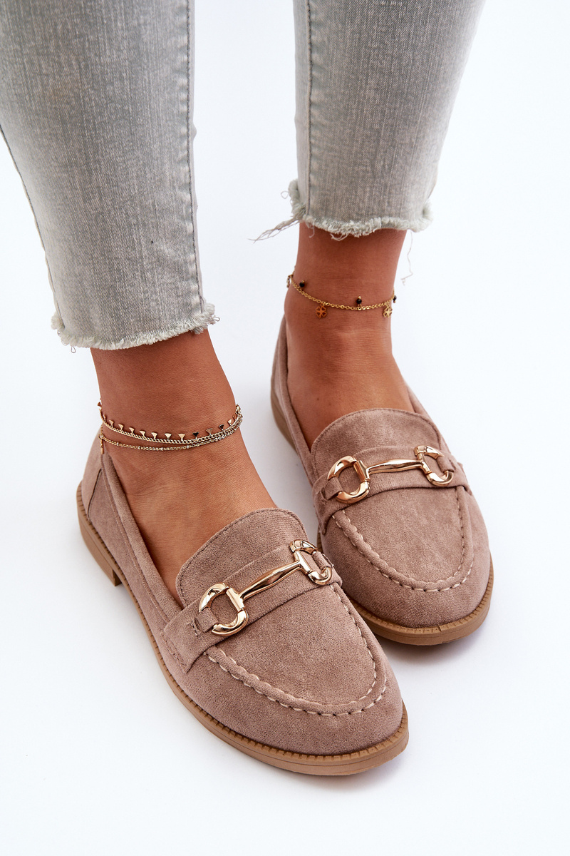 Dámské Mokasíny Na Ploché Podrážce S Ozdobou Tmavě Bežové Aviole