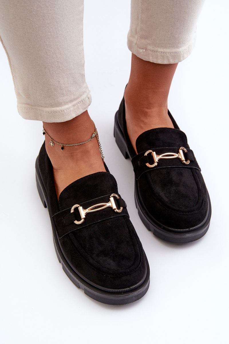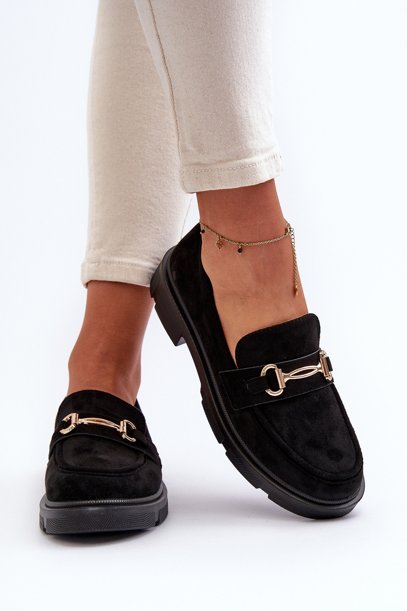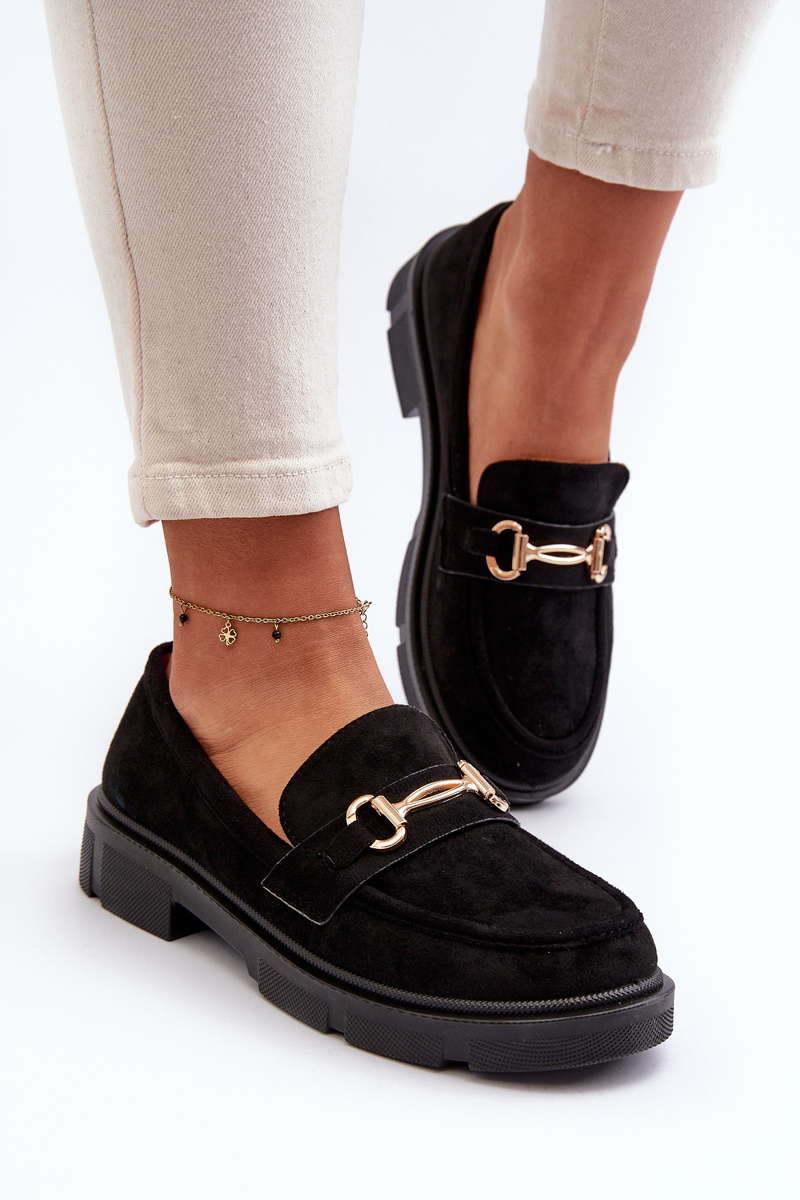 Dámské mokasíny s černým eko semišovým zlatým doplňkem Lighas
