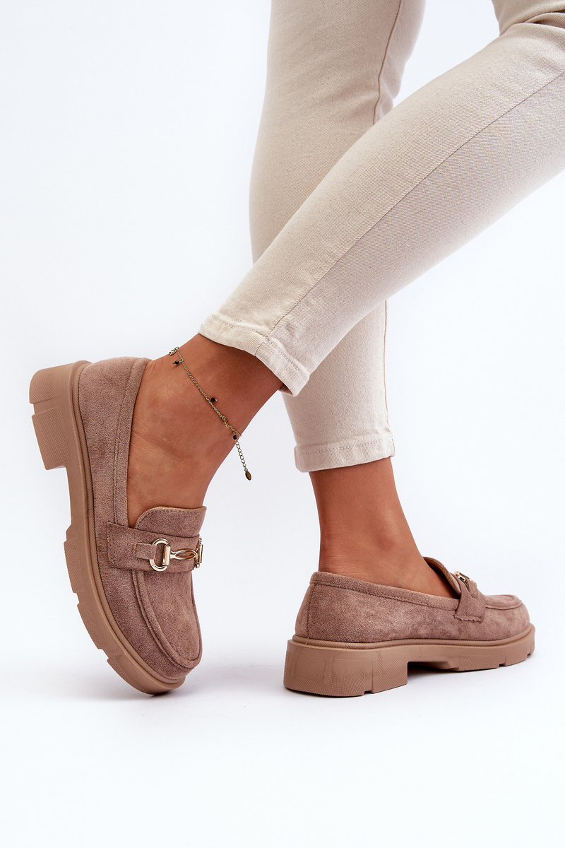 Dámské mokasíny s ​​zlatým ozdobou Eko semišové hnědé Lighas