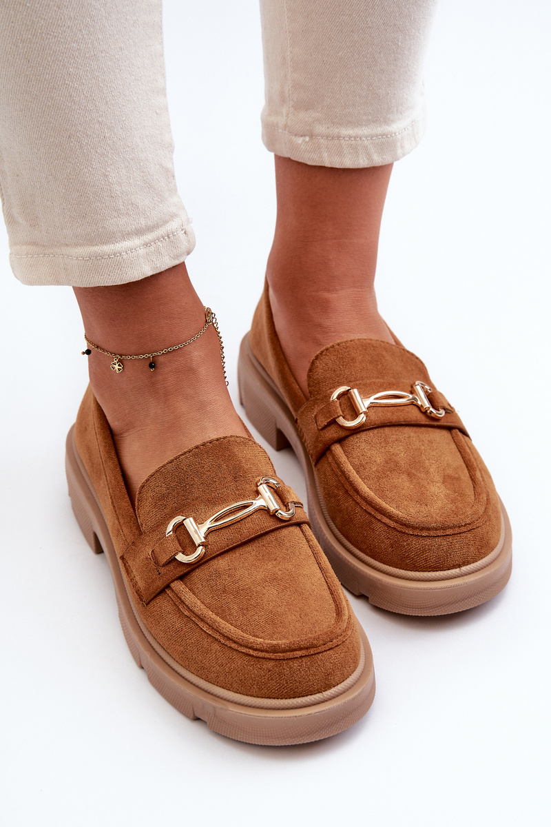 Dámské Mokasíny S Zlatým Ozdobou Eko Zamszové Camel Lighas