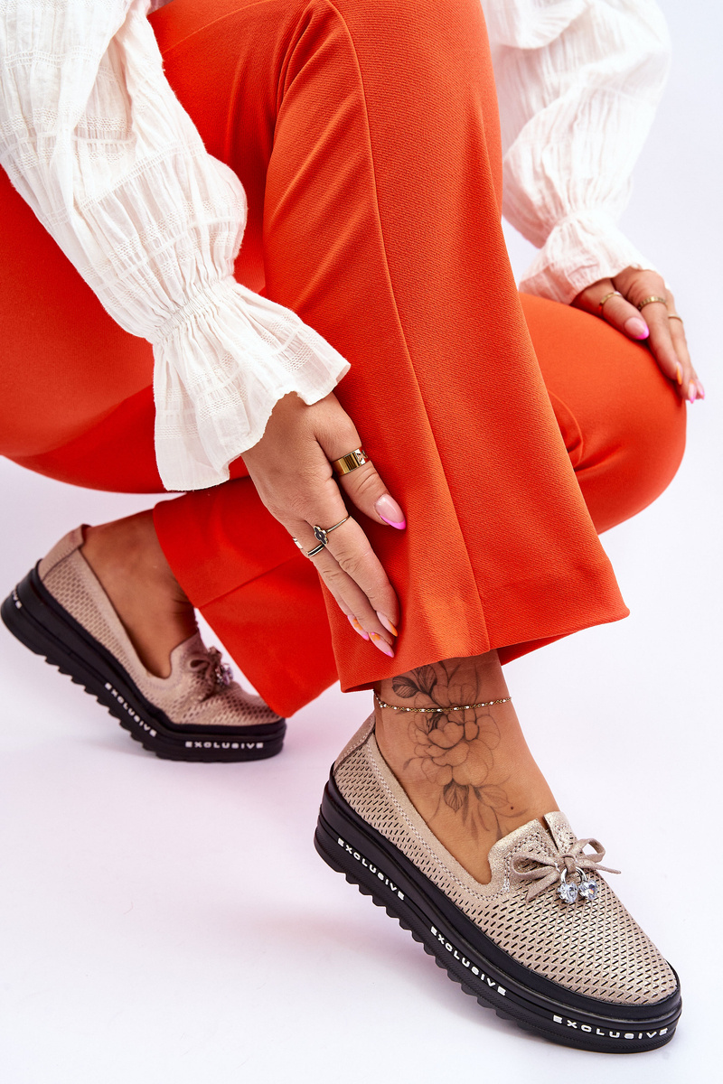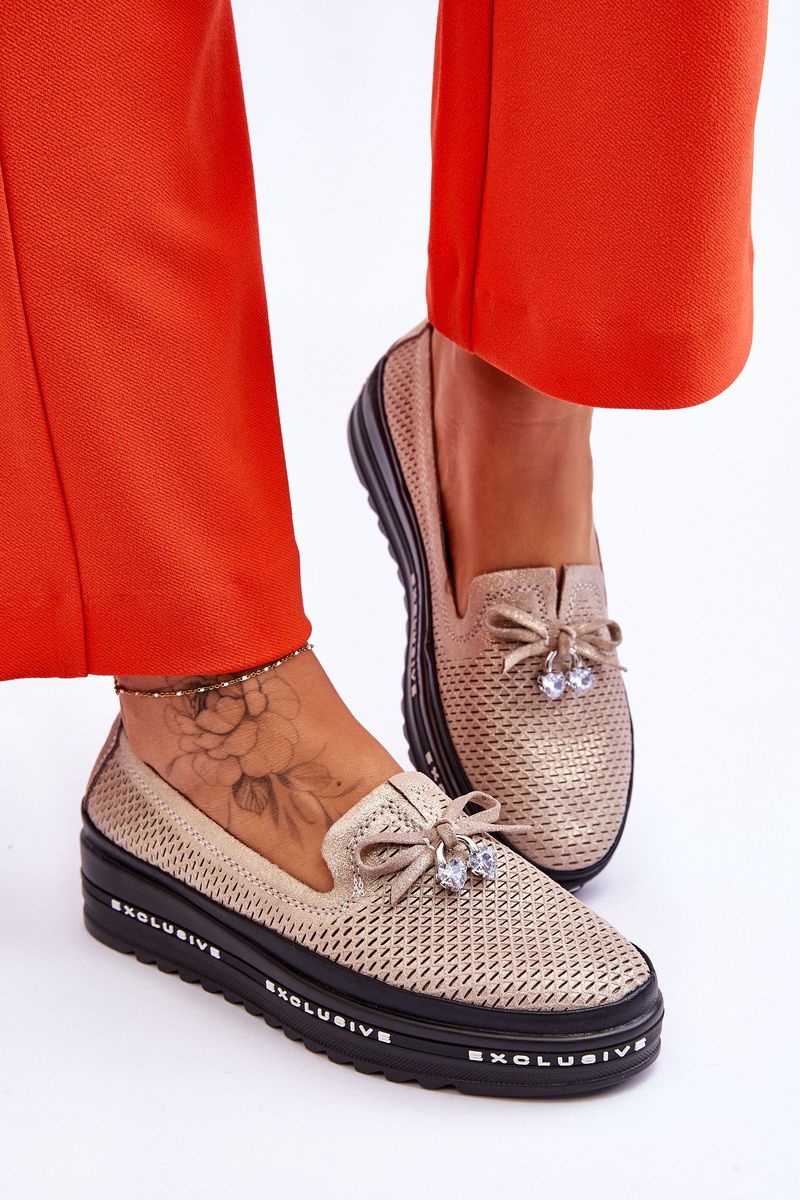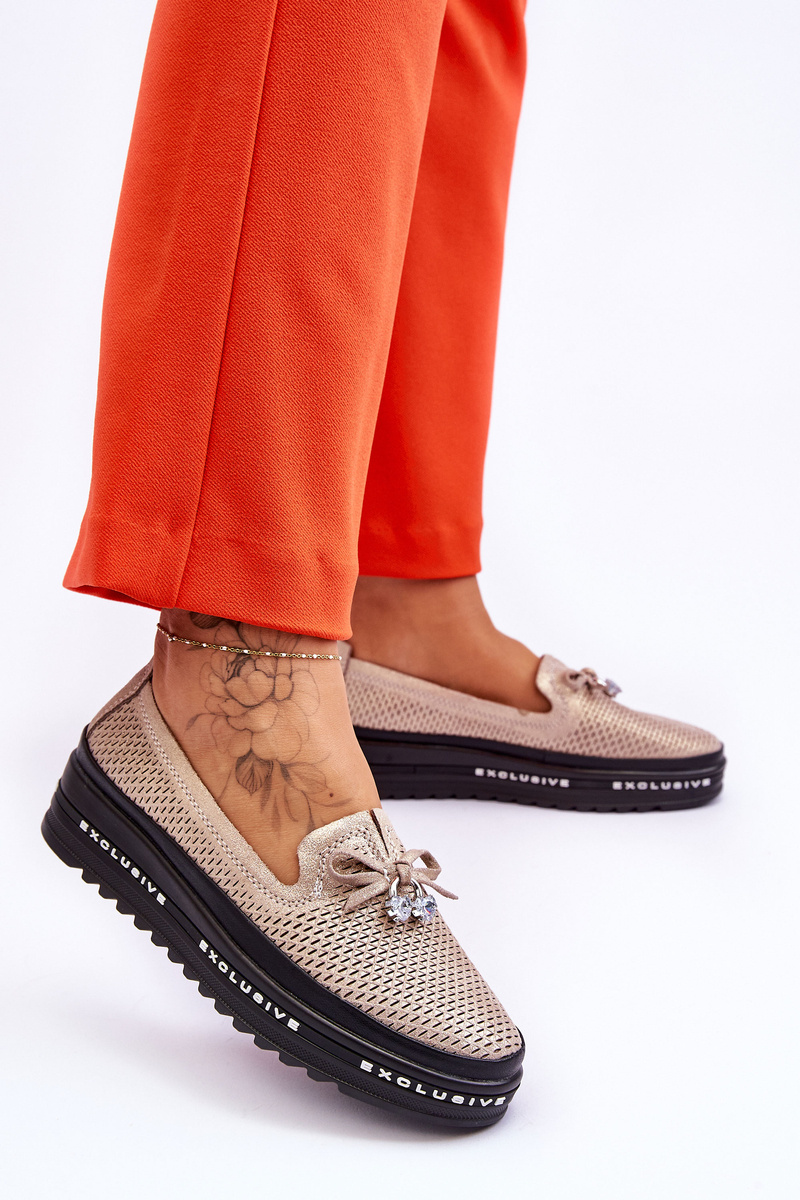 Dámské nazouvací kožené tenisky Třpytivá zlatá Raven