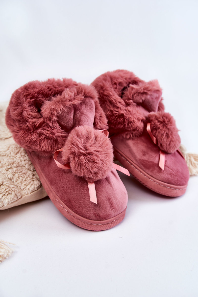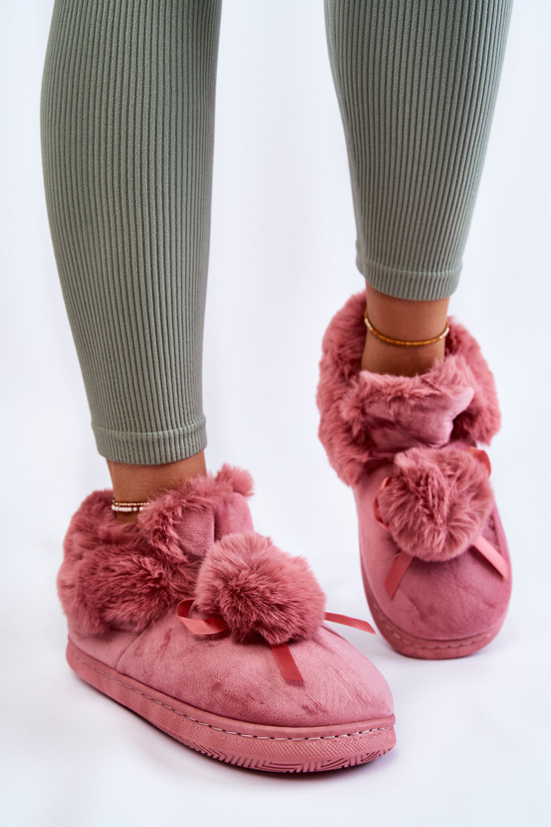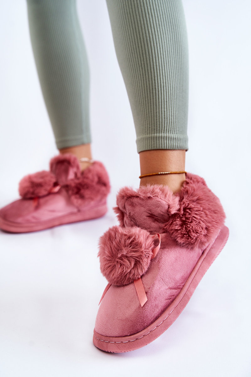 Dámské nazouvací kožešinové pantofle s bambulí Růžové Noemi
