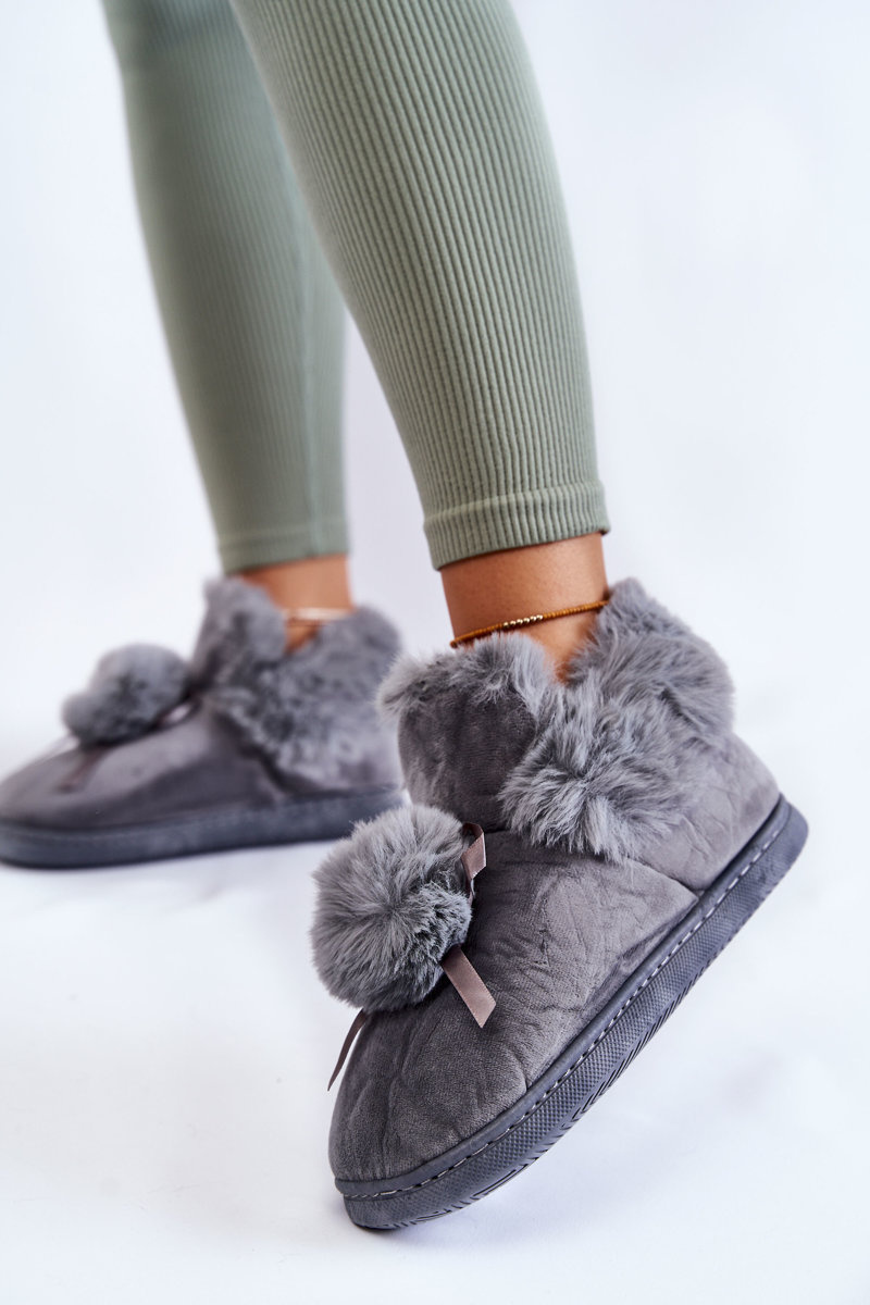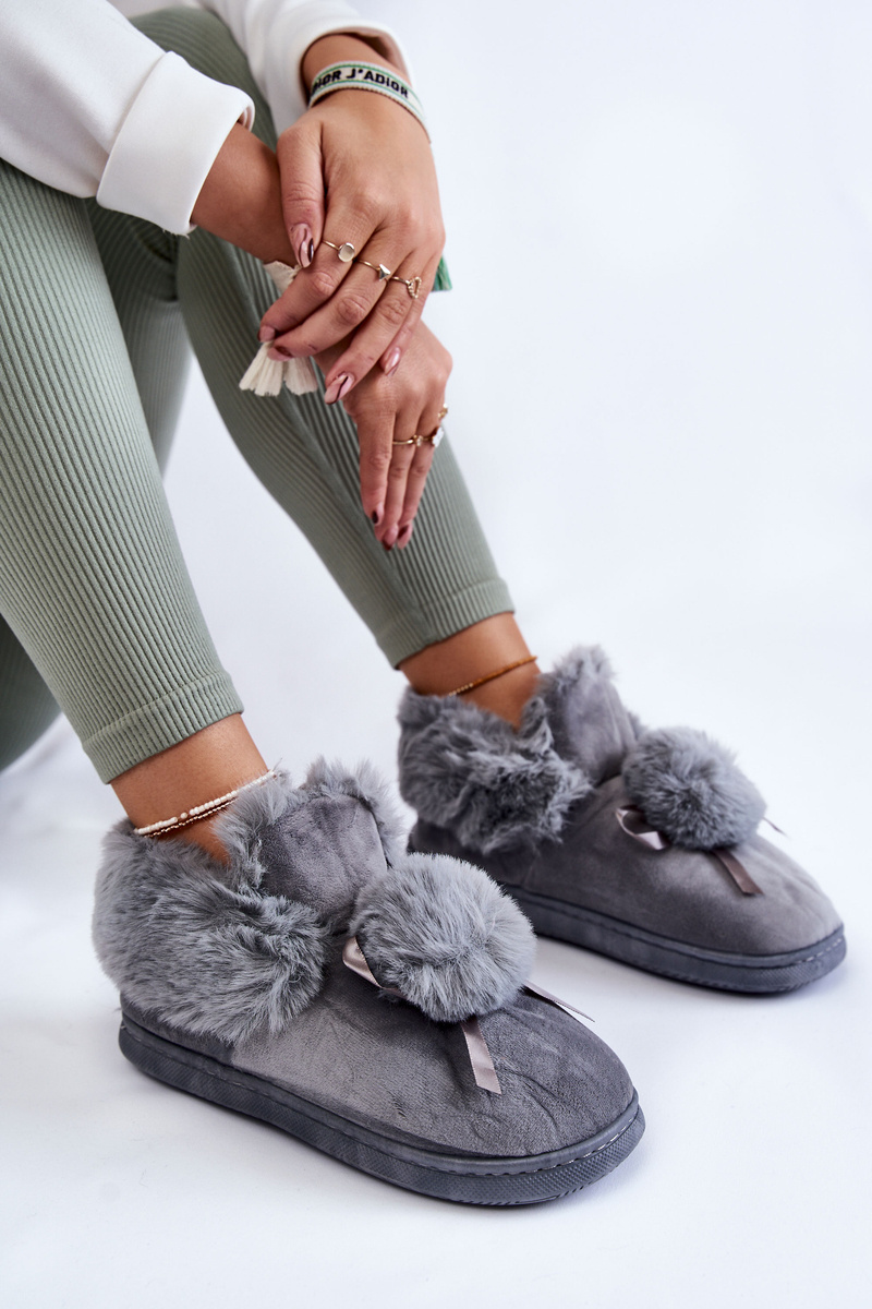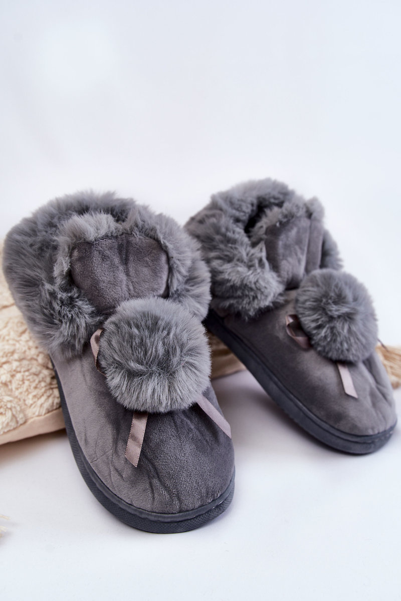 Dámské nazouvací kožešinové pantofle s bambulí Šedá Noemi