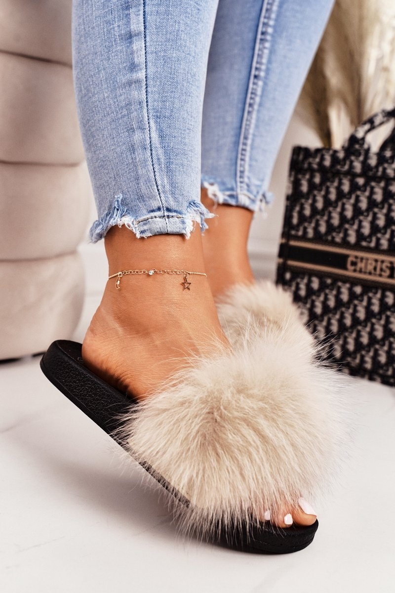 Dámské Nazouváky S Kožešinou Béžové Belmondo