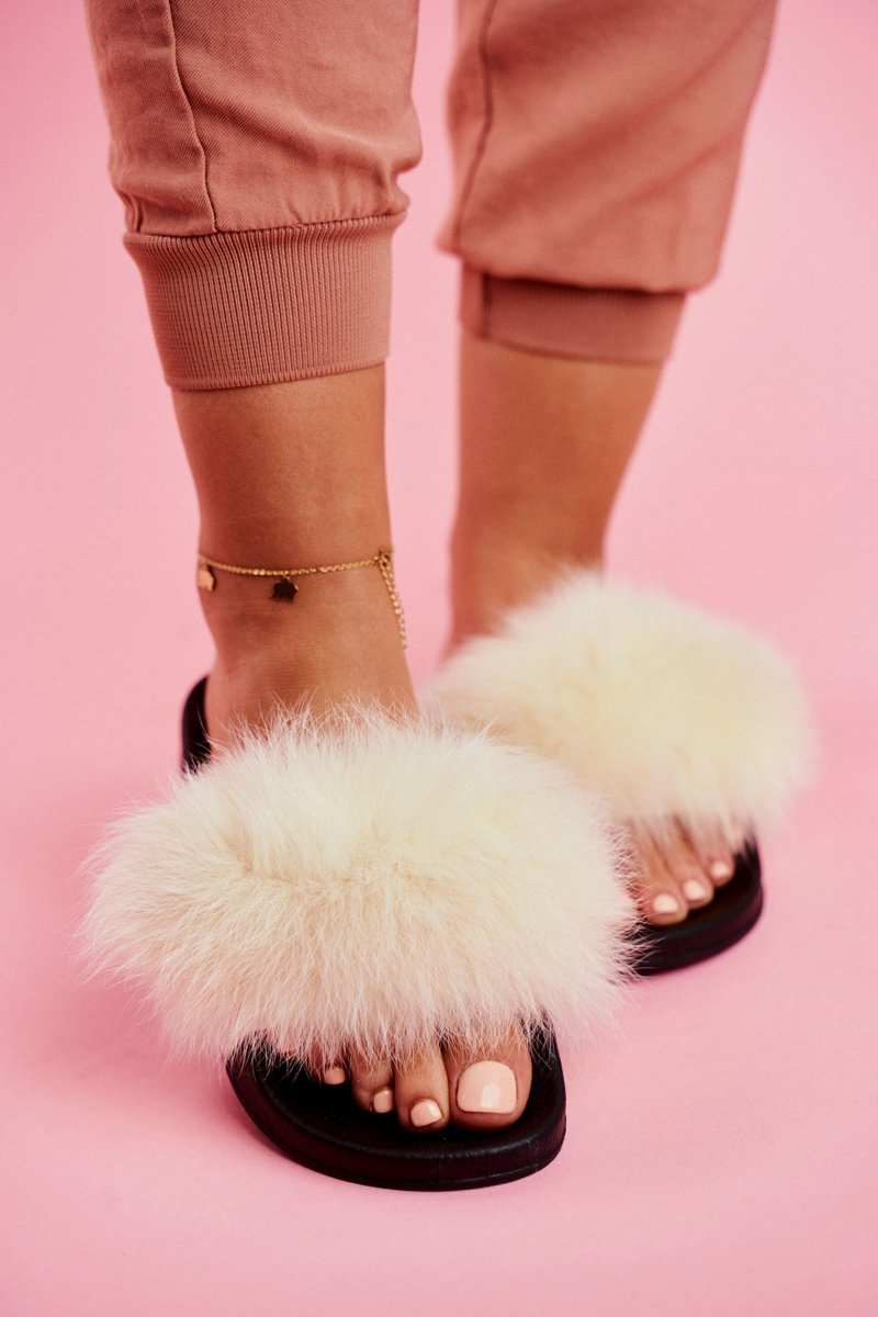 Dámské Nazouváky s kožešinou bílé Belmondo