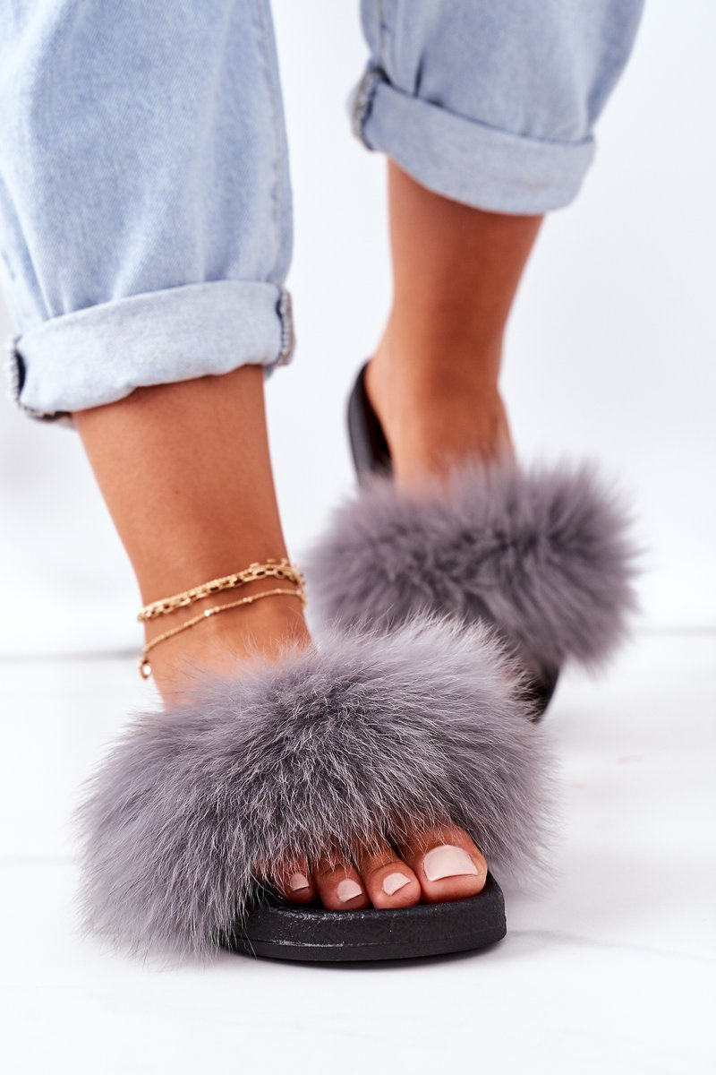Dámské Nazouváky S Kožešinou Tmavě šedé Belmondo