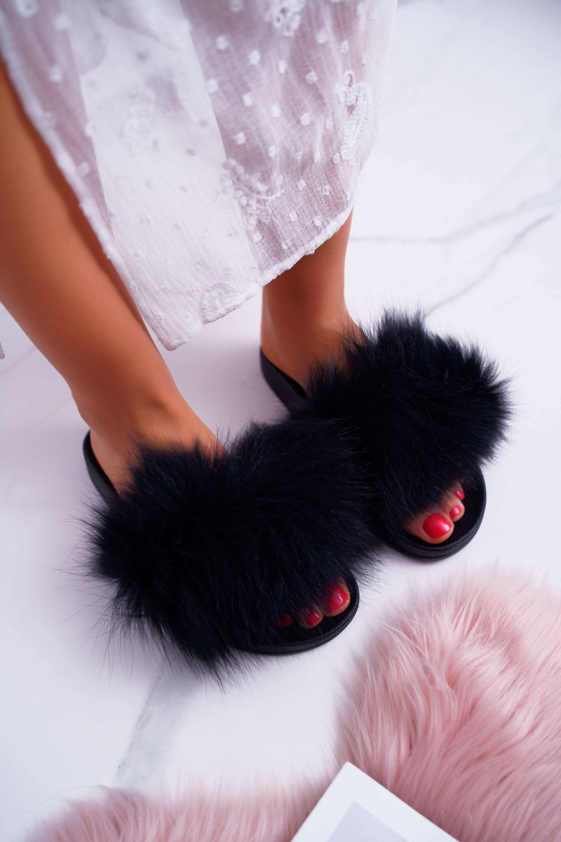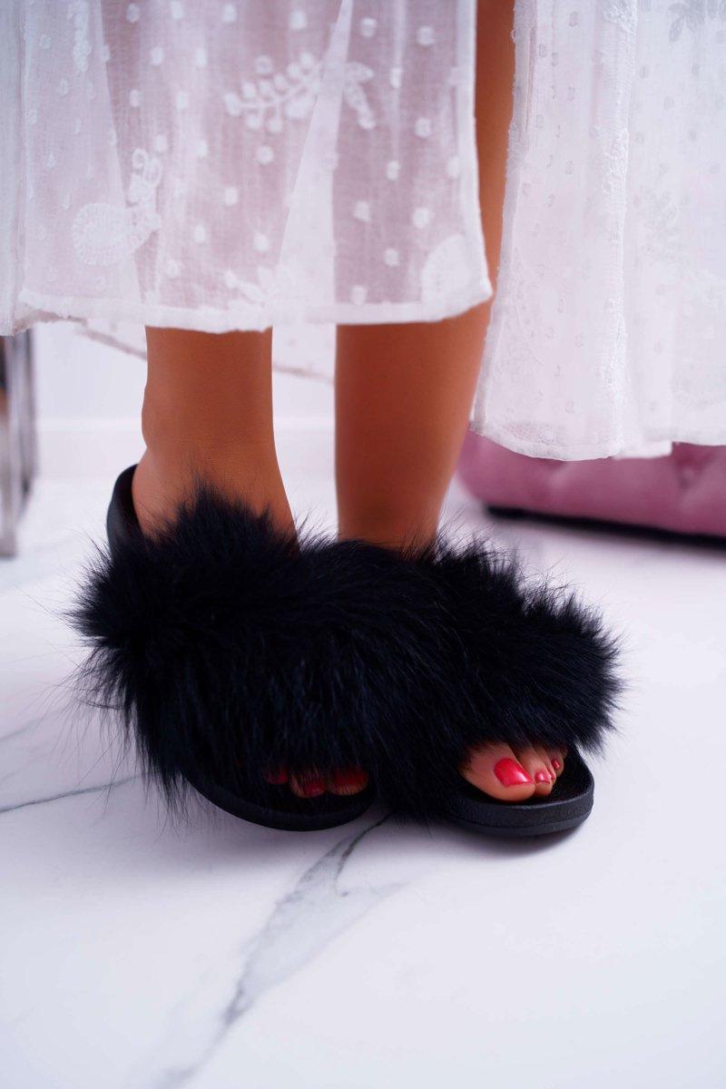 Dámské Nazouváky s Kožíškem Černé Mellow