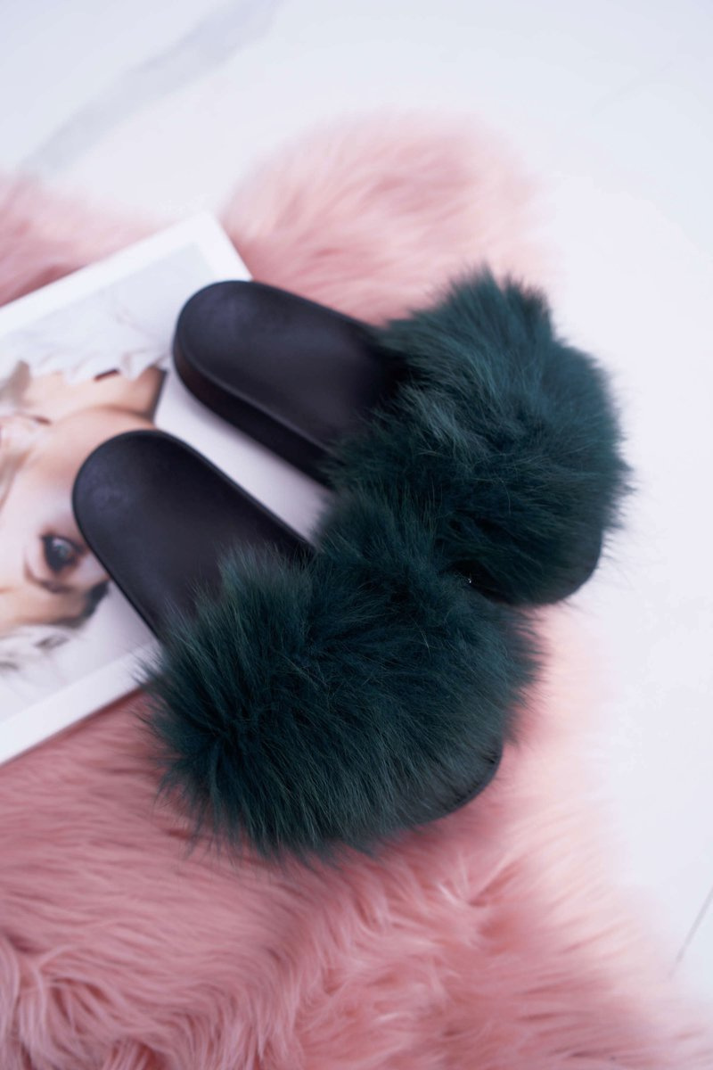 Dámské Nazouváky s Kožíškem zelené Mellow