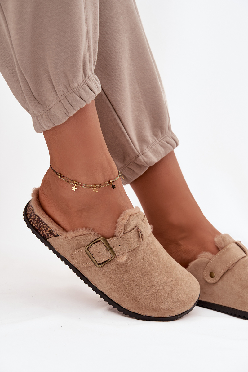 Dámské nazouváky s teplou podšívkou s přezkou Béžové Sylisse