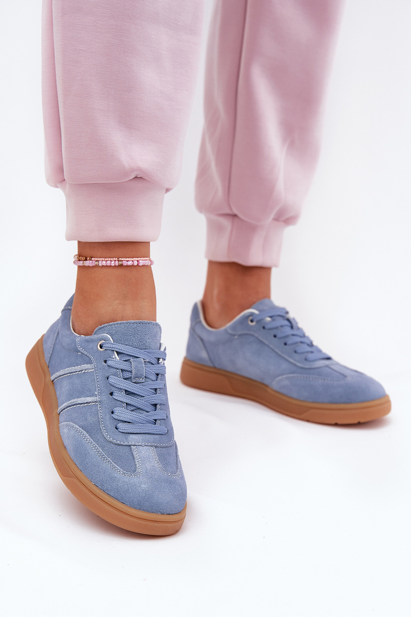 Nízké dámské tenisky vyrobené z přírodní semišové kůže. Špičky bot jsou zaoblené. Klasické šněrování umožňuje dokonalé přizpůsobení šířce nohy a kožená stélka zajišťuje pohodlí a tlumení. Stylové a univerzální, skvěle se hodí k různým stylizacím. Při výběru velikosti se řiďte tabulkou velikostí.