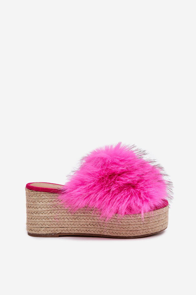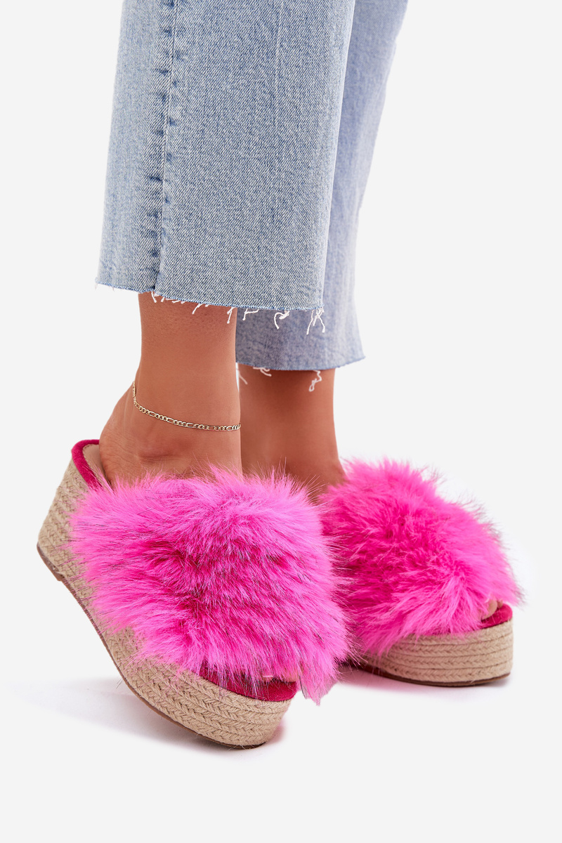 Dámské Pantofle Na Klínu S Kožíškem A Pletením Fuchsie Virela