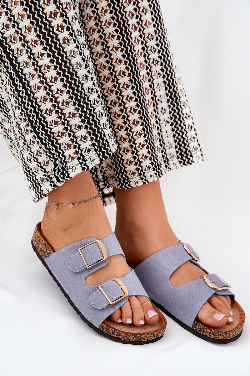 Stylové dámské pantofle na korkové platformě, které kombinují pohodlí s módním vzhledem. Vpředu se nacházejí dva pásky s přezkami, které zajišťují dokonalé přizpůsobení. Profilovaná eko semišová stélka zaručuje komfort po celý den. Tyto pantofle budou skvělou volbou na letní dny, skvěle se hodí k šatům, sukním a kalhotám. Při výběru velikosti se řiďte tabulkou velikostí.