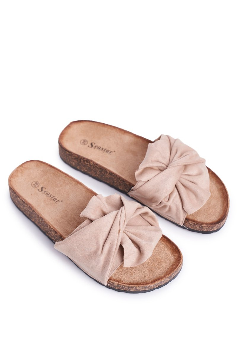 Dámské Pantofle Na Korku s mašlí Béžové Felis