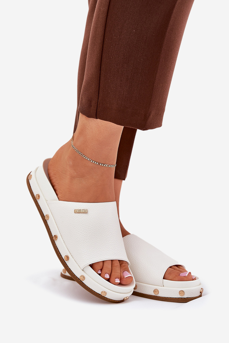 Dámské Pantofle Na Platformě S Hřebíky Big Star RR274216 Bílé