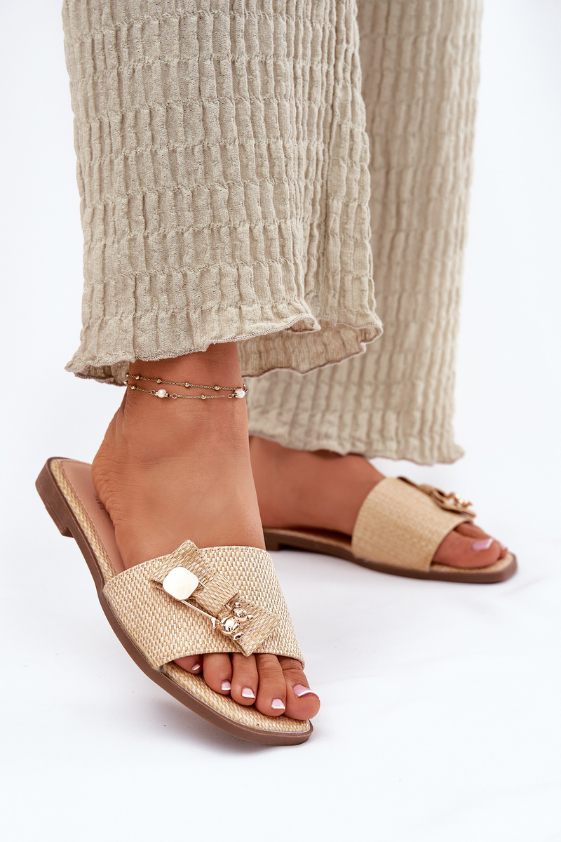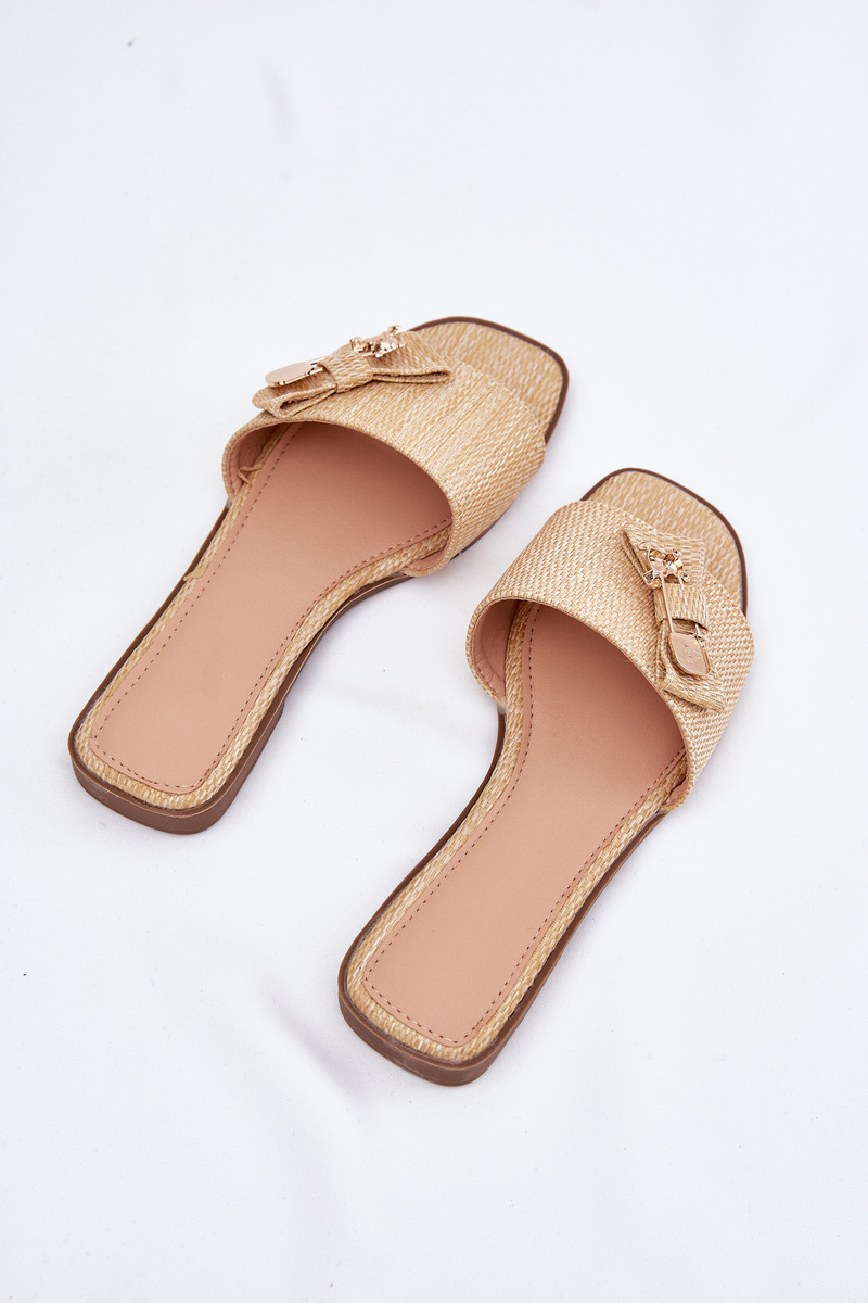 Dámské Pantofle Na Plochém Podpatku S Mašlí Béžové Sallariela