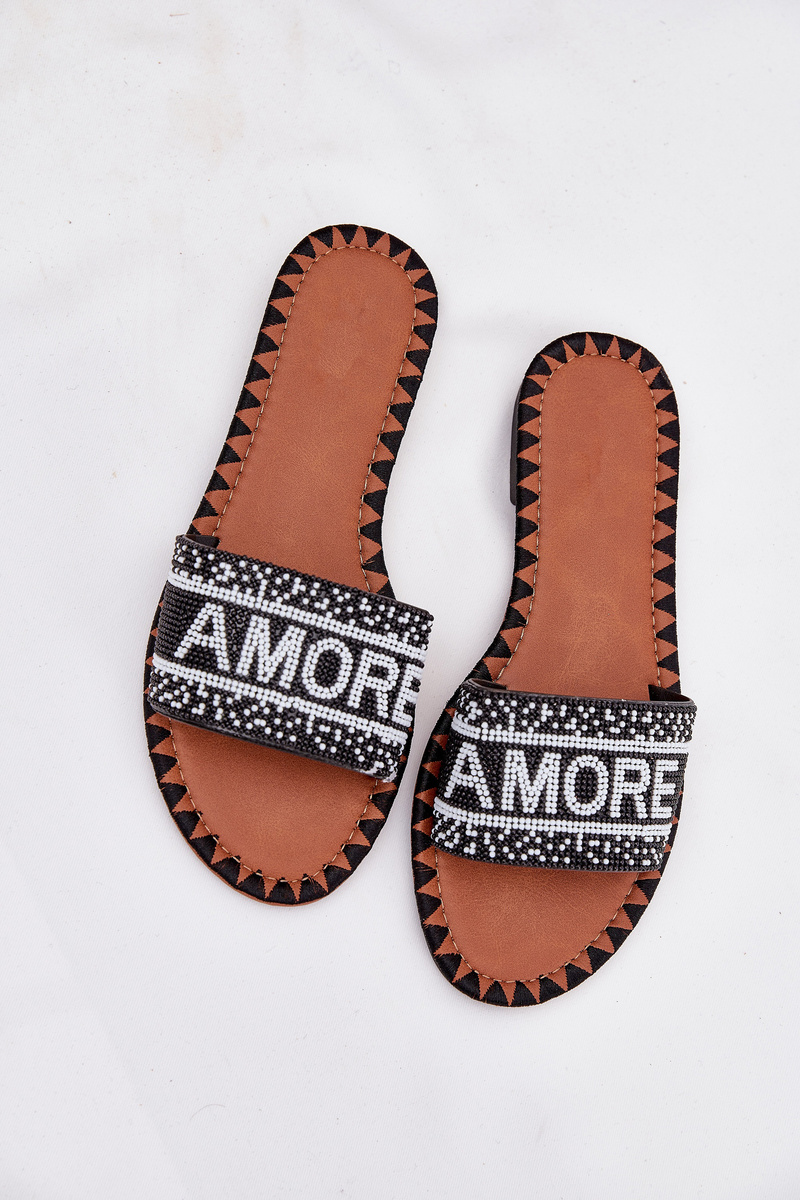 Dámské Pantofle Na Plochém Podpatku Se Zdobením Amore Černé Avelina