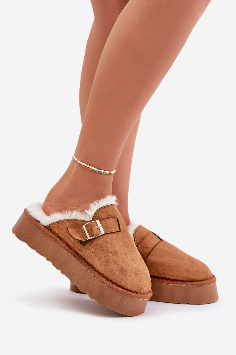 Dámské pantofle na silné podrážce s kožešinou a sponou Camel Linneola