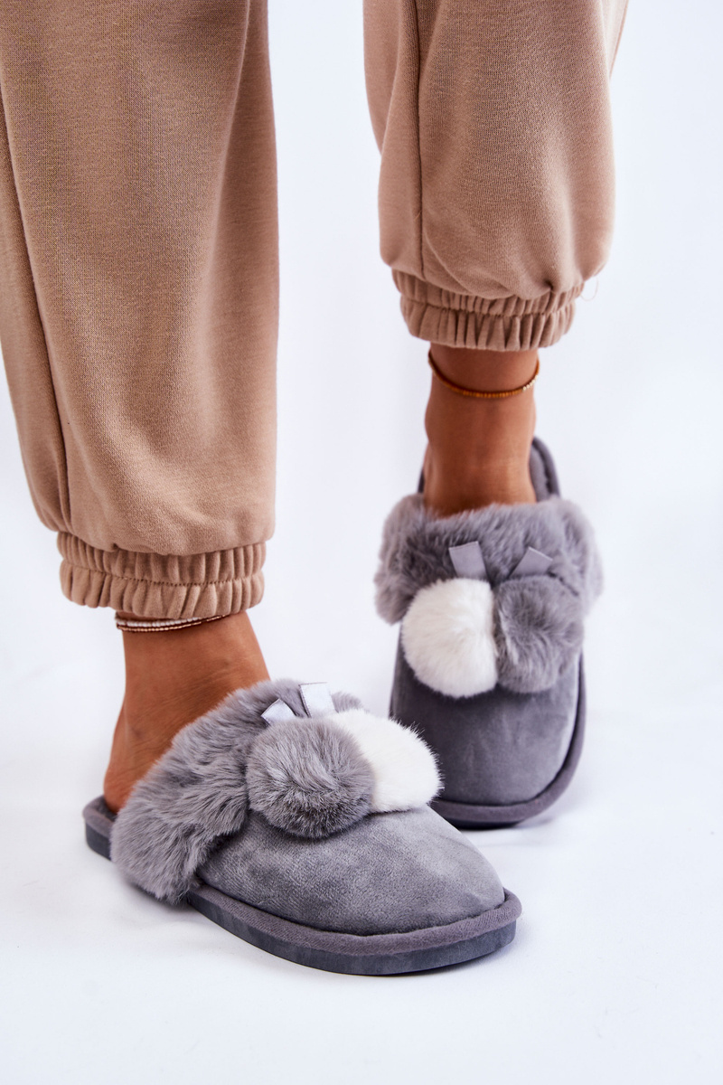 Dámské pantofle s bambulí a kožešinou šedá Sahira