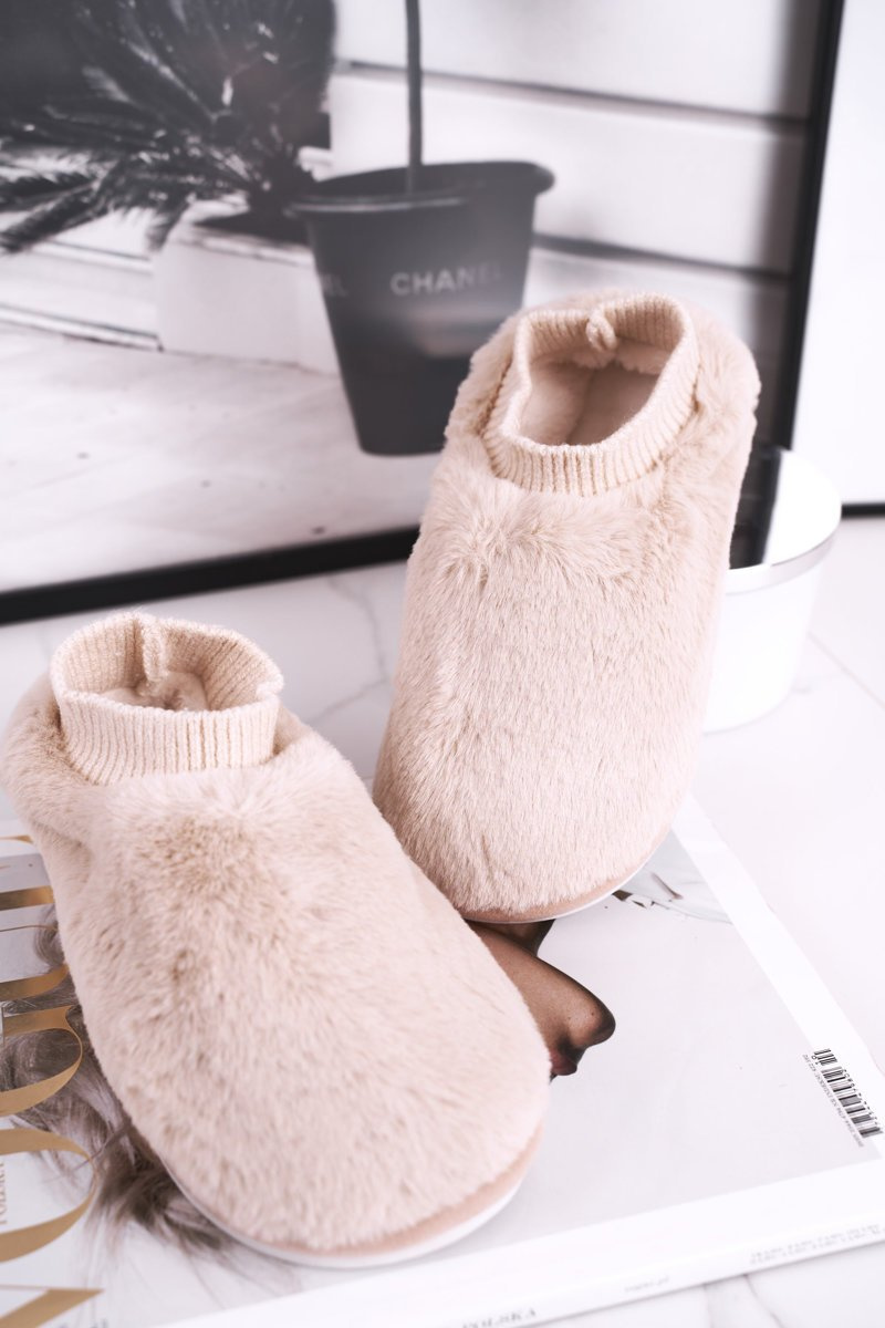 Dámské Pantofle s Kožešinou a Ponožkou Béžové Yeti